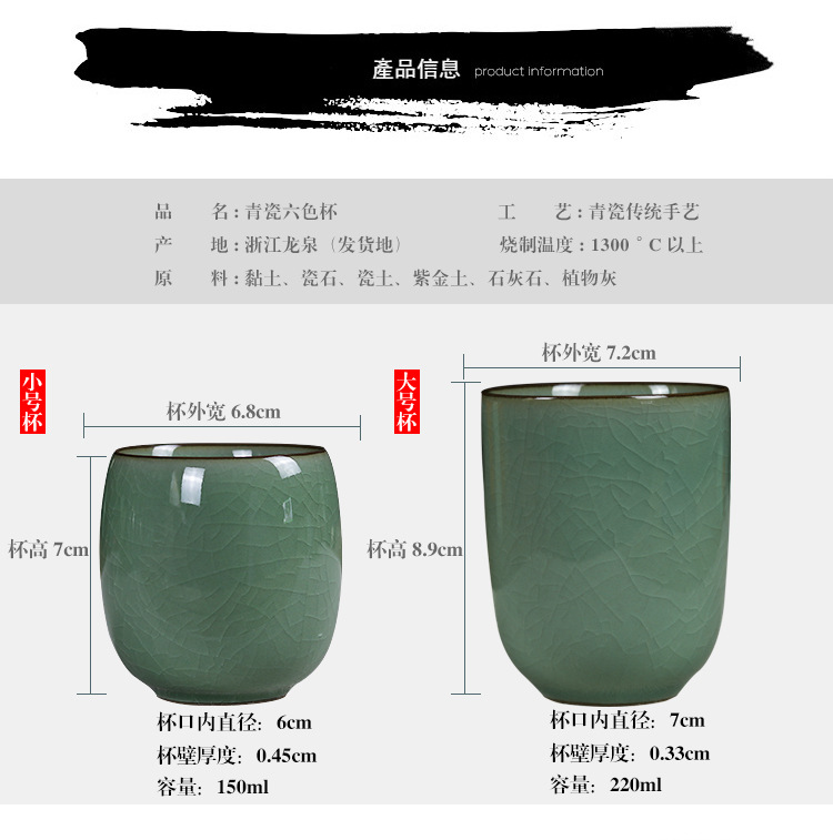 O6AM Longquan Kiln celadon ceramic Mark water cup small tea cup master kung fu tea set ice crack six-color tea cup