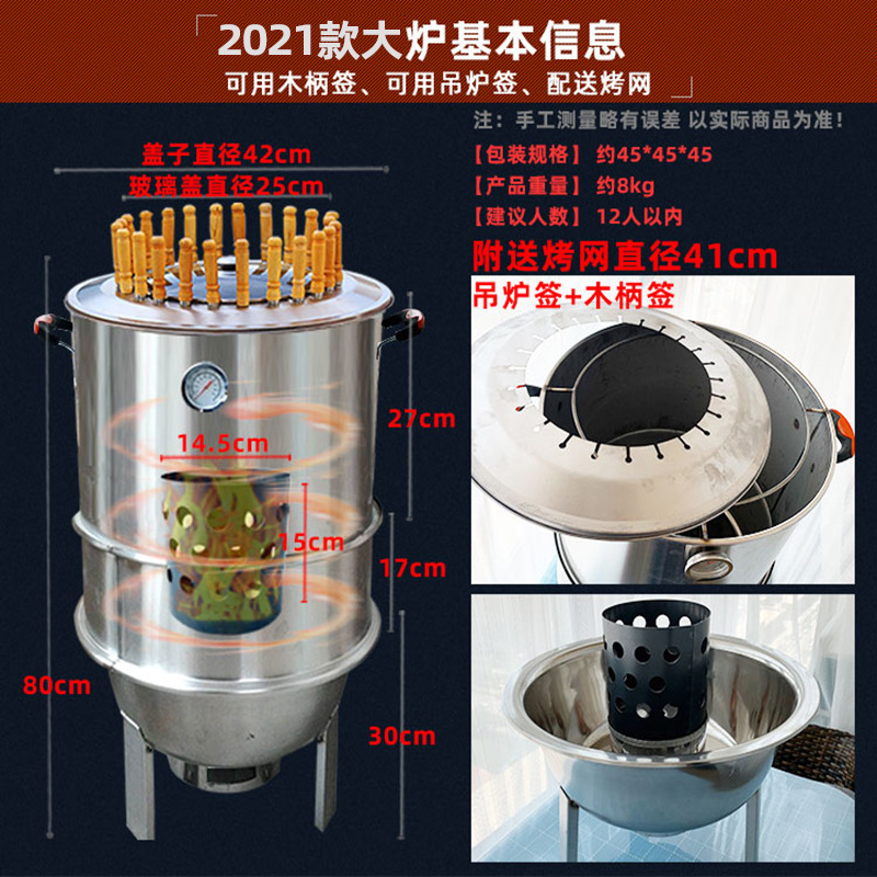 | nameOriginal | O6AM smoke-free barbecue stove outdoor household stainless steel smoked bacon hanging stove charcoal barbecue hanging barbecue stove hanging stove baking |
