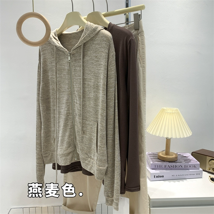 | nameOriginal | Oatmeal color thin drapey sun protection knitted hoodie |