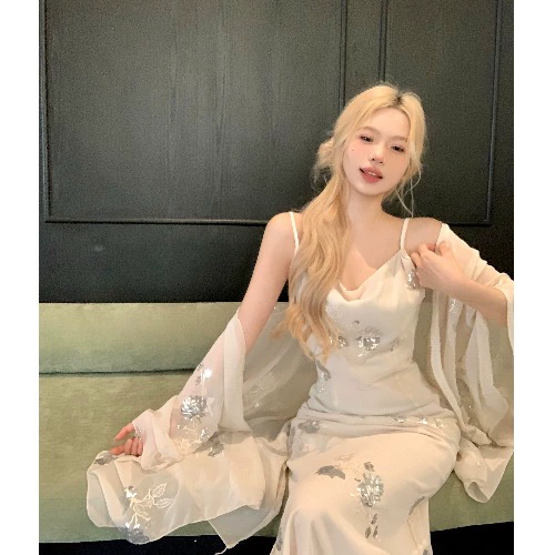 | nameOriginal | Oblique silk heavy embroidery cape shawl suspender dress |