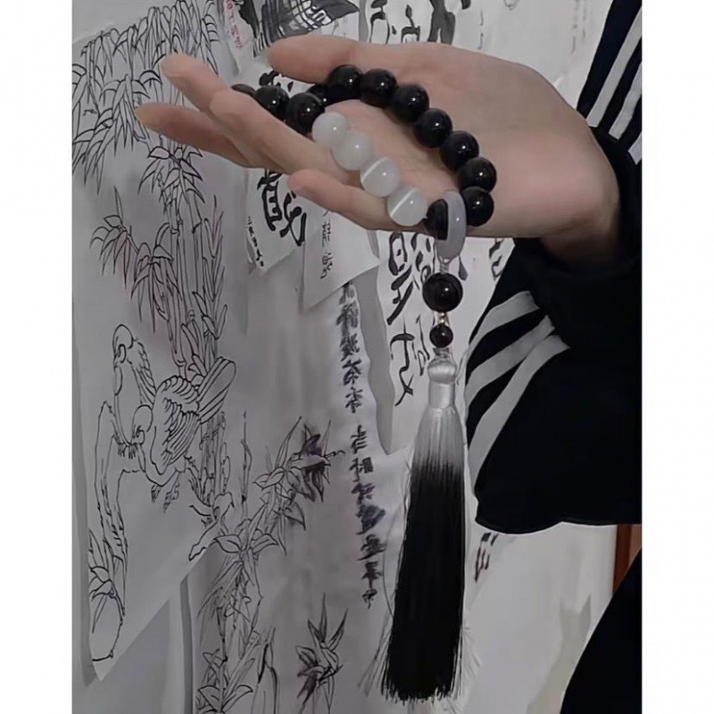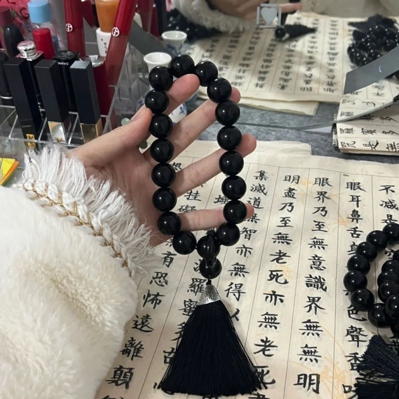 Obsidian Wen Play Hand-held Bracelet Twist Rosary Around Finger Soft Hand 18 Zi Antique Running Ring Tassel Transfer Beads Couple