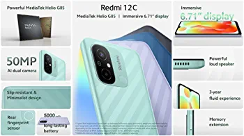 | nameOriginal | Redmi 12C (Ocean Blue 6GB RAM, 128 Storage) – Powerful MediaTek Helio G85, Immersive 6.71" HD+ display, 50MP AI dual camera, 5000mAh long-lasting battery  |