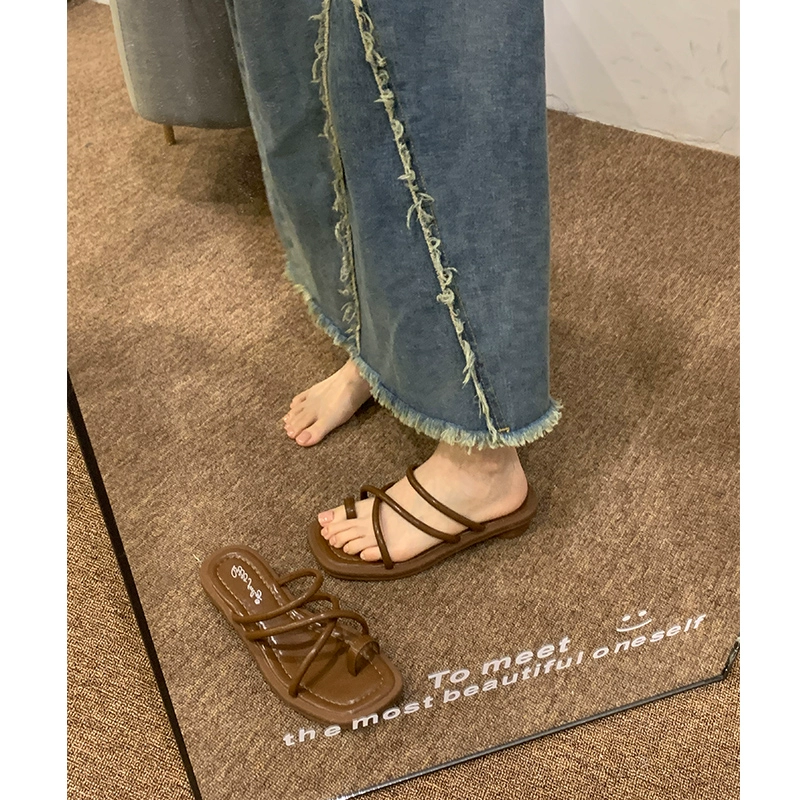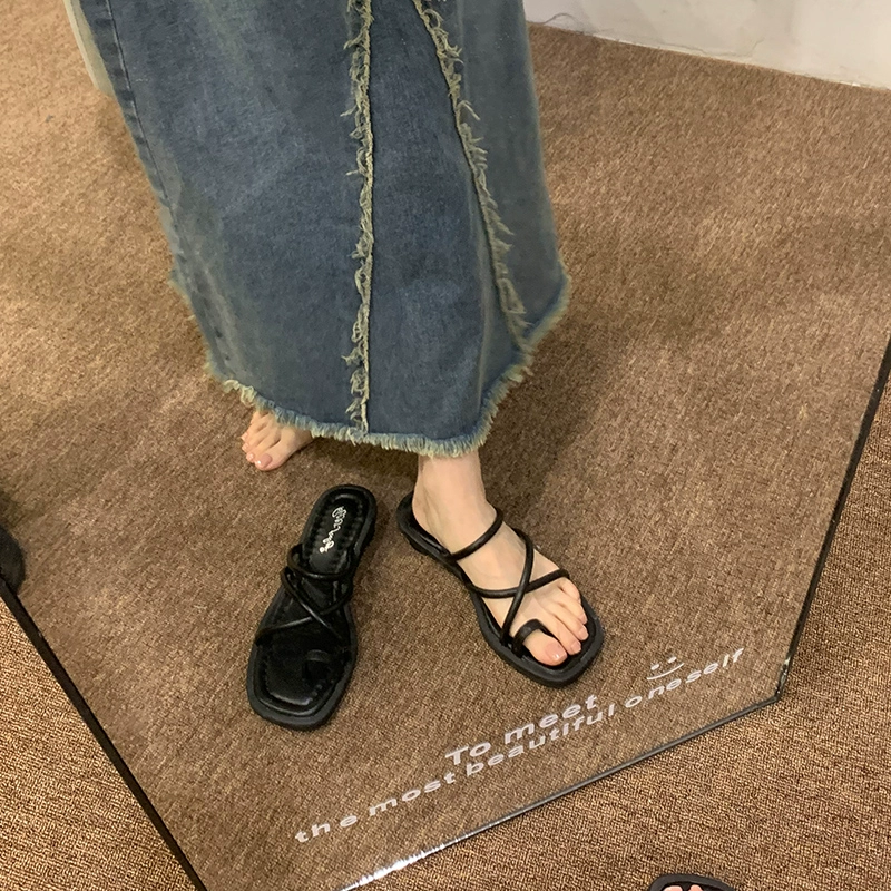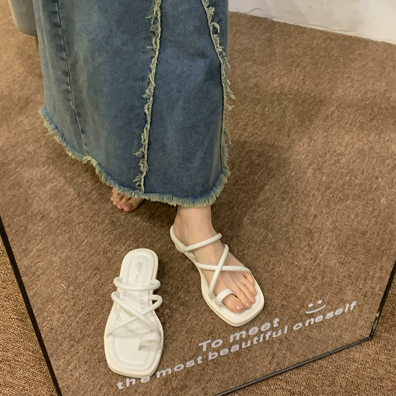 | nameOriginal | ocean one gentle cross strap thick heel slippers vacation thong toe korean version seaside daily half slippers summer 40 size |