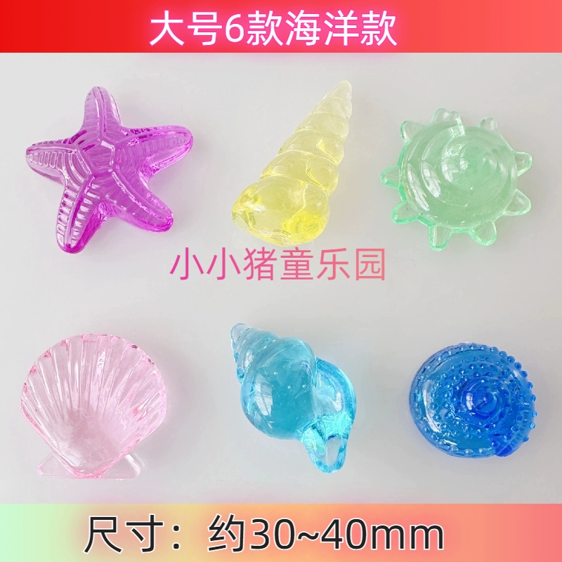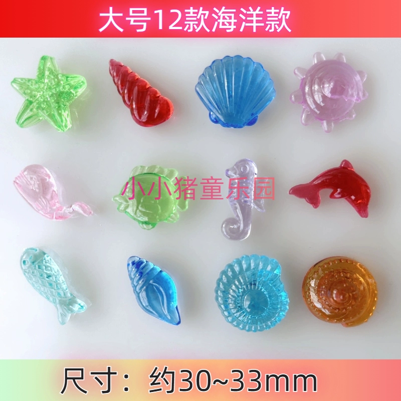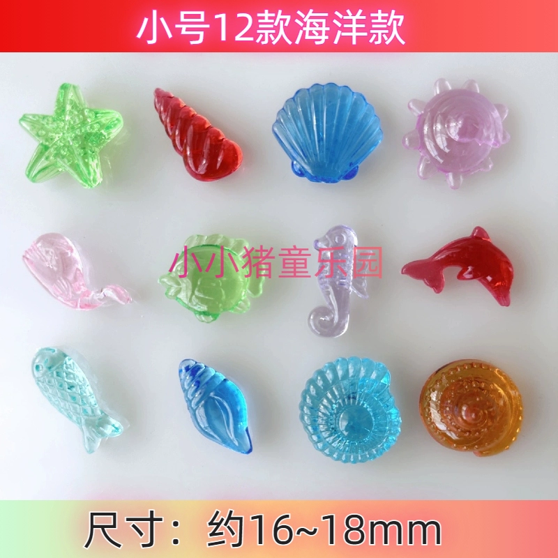 | nameOriginal | Ocean shell dolphin conch seahorse gem toy acrylic simulation crystal children's play house game gem |