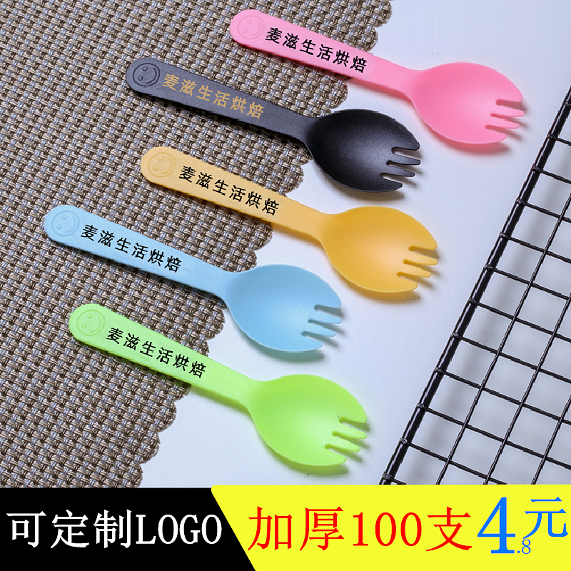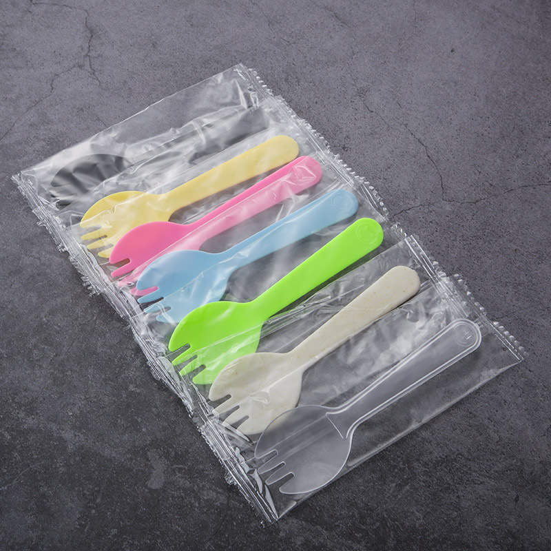 OF9D Disposable Spoon Plastic Cake Fork Spoon One-piece Separate Packaging Fruit Fork Dessert Small Spoon Ice Cream Plus