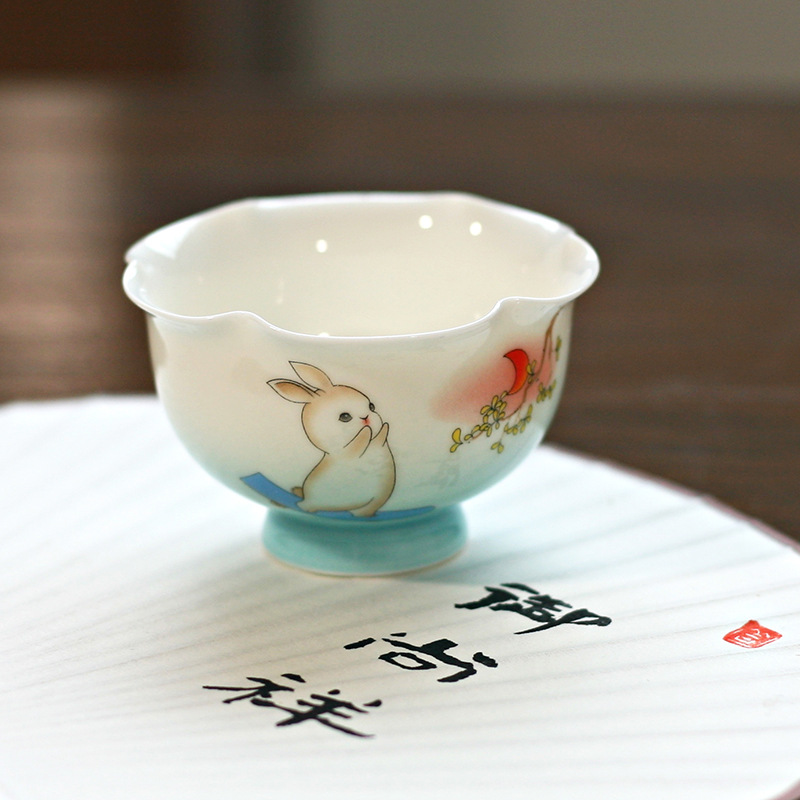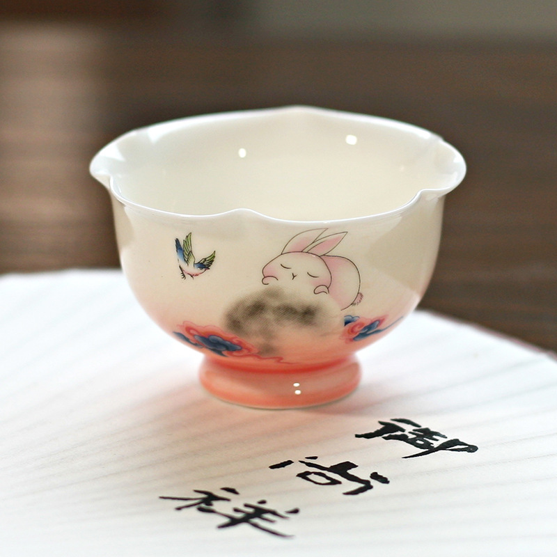 | nameOriginal | OF9D hand-painted rabbit ceramic tea cup petal Master Cup household tea cup tea cup white porcelain tea maker |