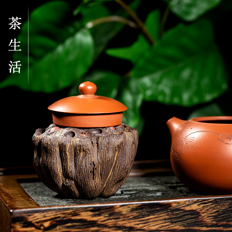 OF9D Tea Pet Purple Sand Can Raise Handmade Lotus Seed Sculpture Dry Lotus Handle Tea Tray Window Home Decoration Small Pendulum