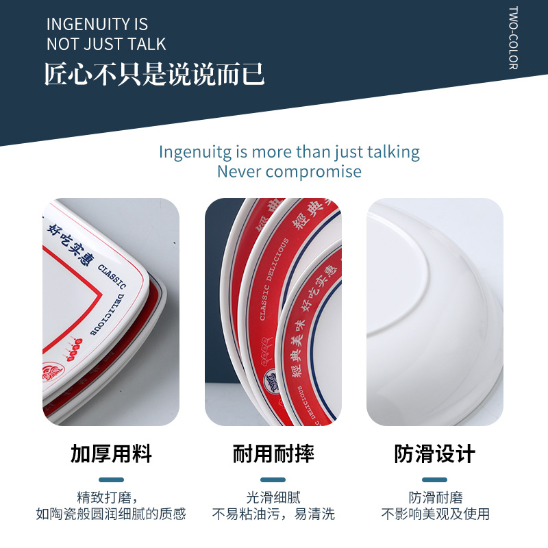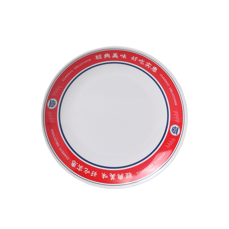 | nameOriginal | OF9DA5 red and blue two-color melamine plate commercial round plastic dish disc ins style imitation porcelain flat plate tableware |