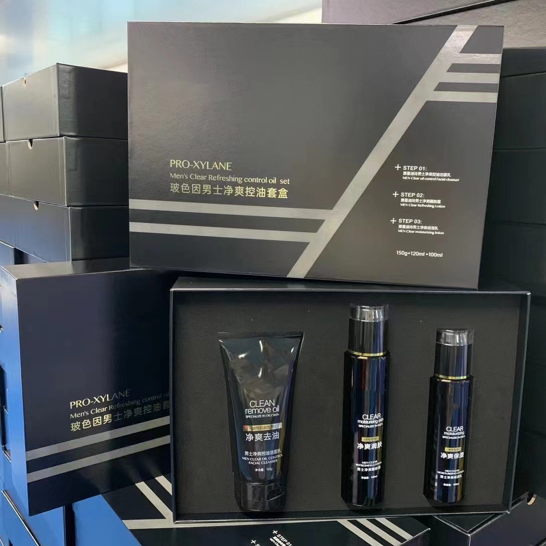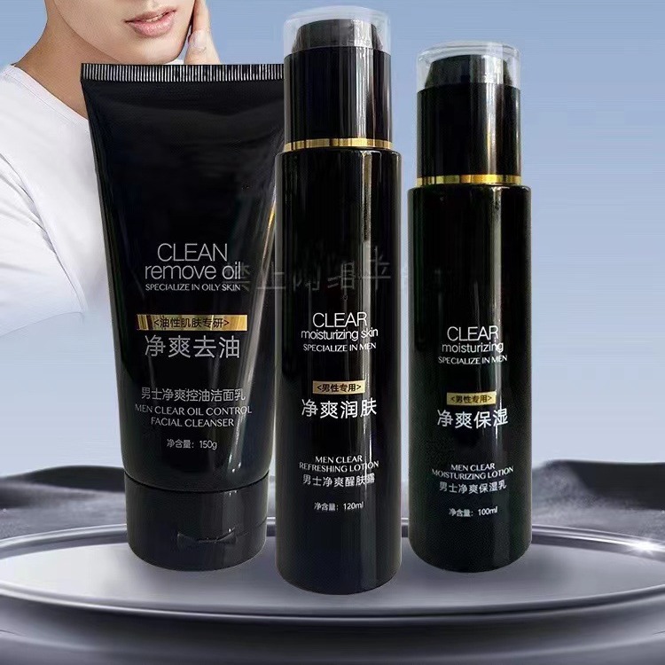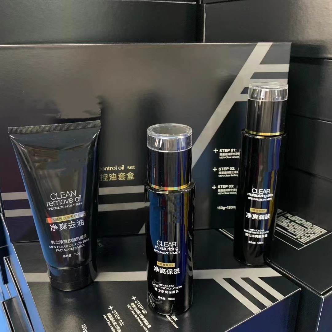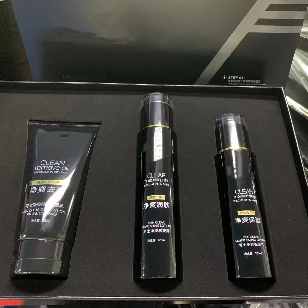 Off-line brand men’s facial cleansing three-piece skin care products moisturizing oil control acne refreshing facial care suit