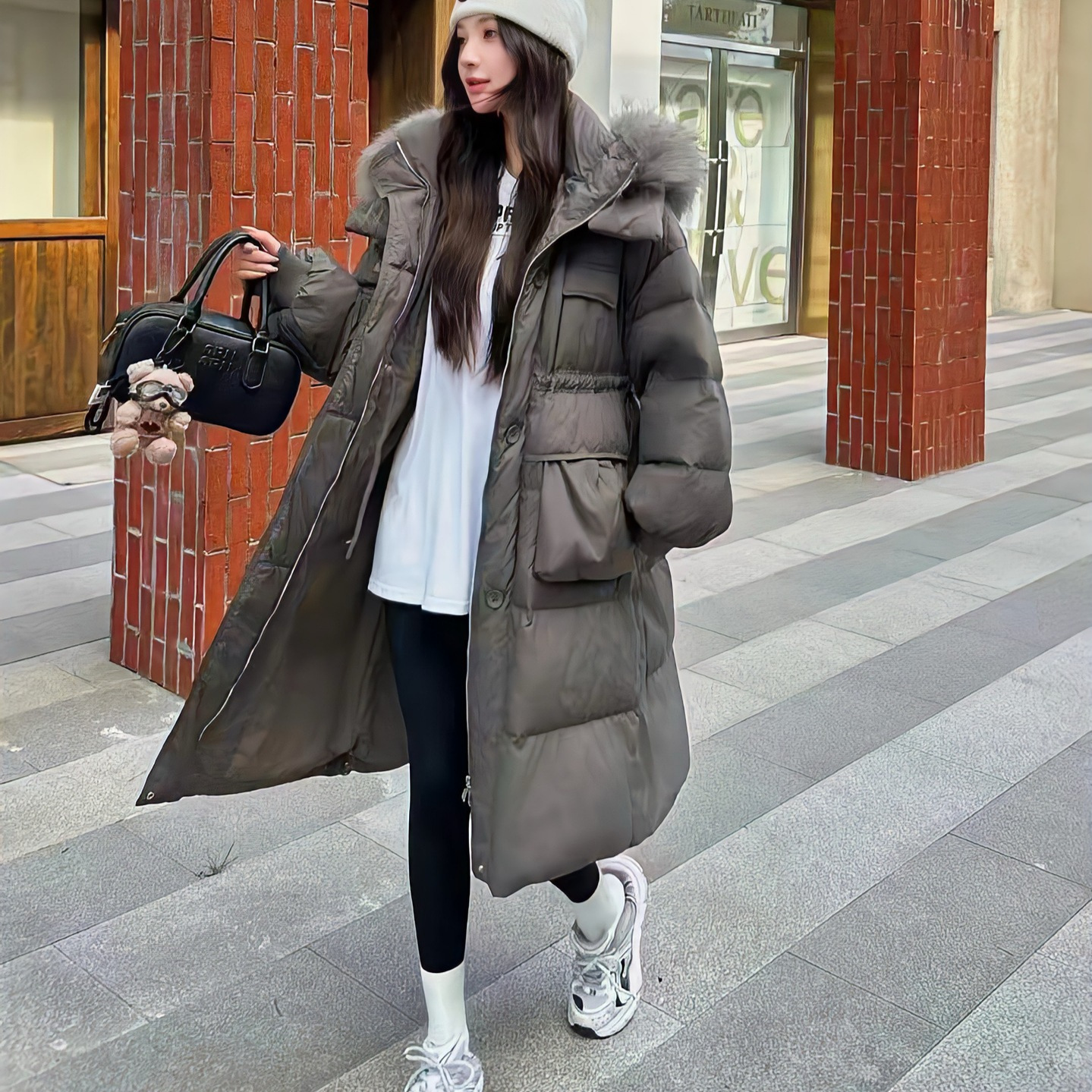 | nameOriginal | Off-season New Long White Duck Down Jacket Women's Over-knee Large Wool Collar Tight Waist Korean Style Thickened Loose Jacket |