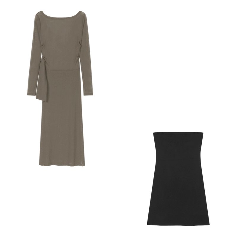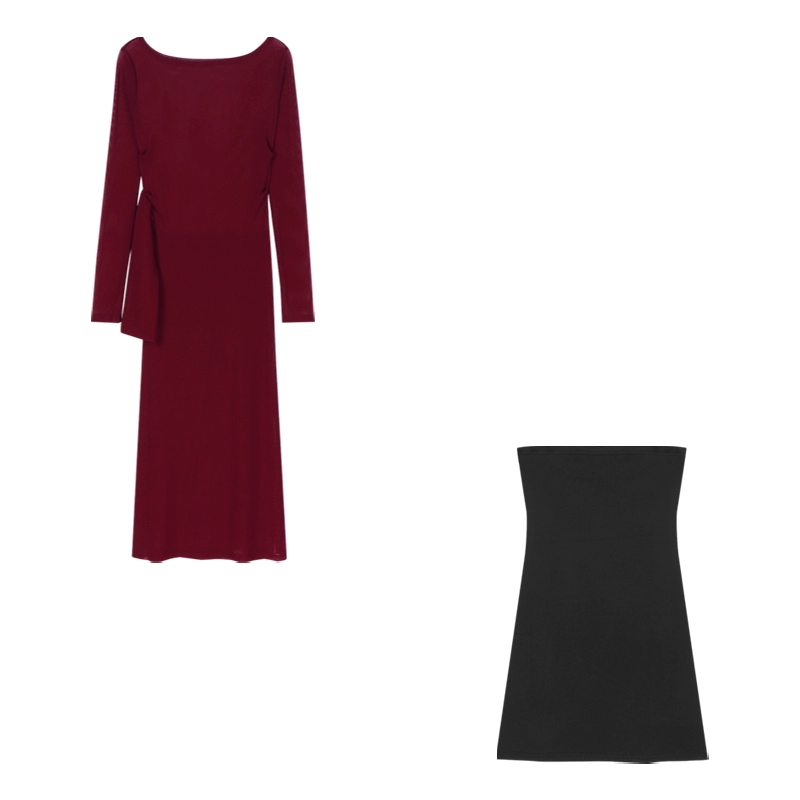 Off-shoulder black dress summer slit slim mesh mesh