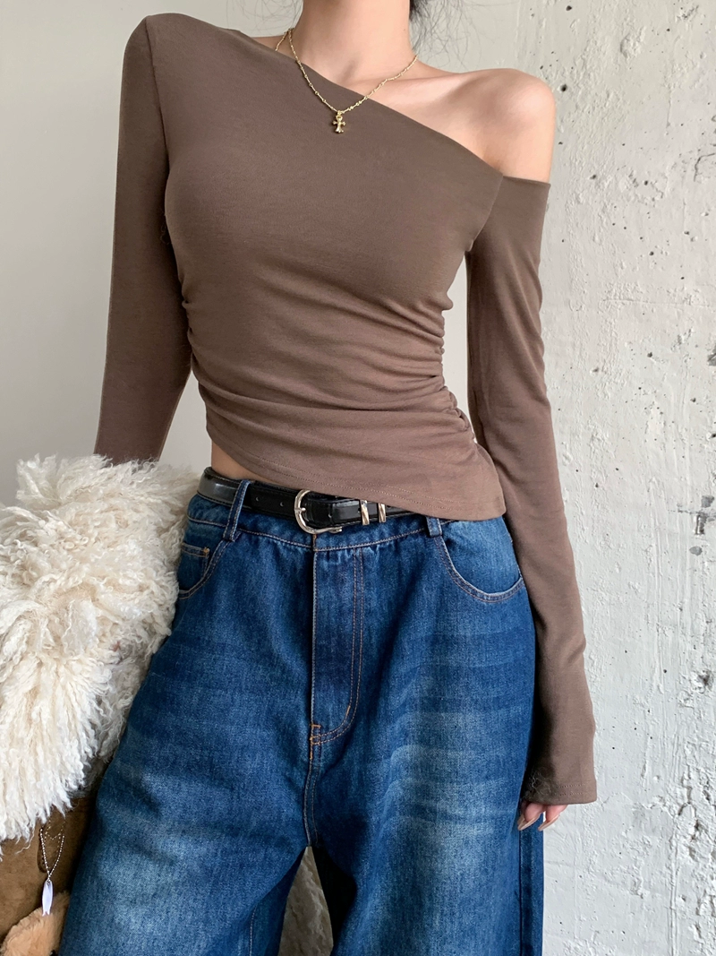 | nameOriginal | Off-shoulder black spring irregular slim long-sleeved T-shirt |