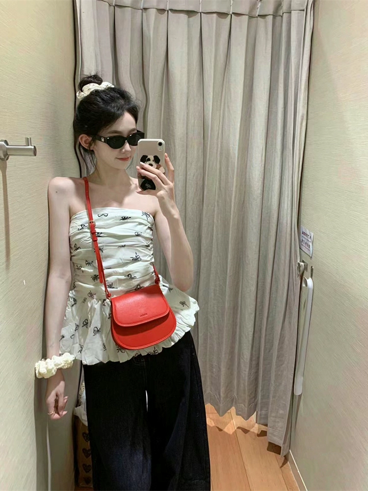 Off-shoulder blouse with bow print