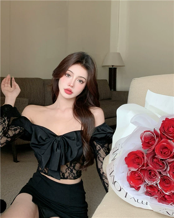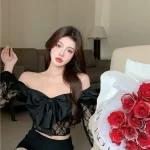 | nameOriginal | Off-shoulder Butterfly Black Slim Fit Short Lace Top |