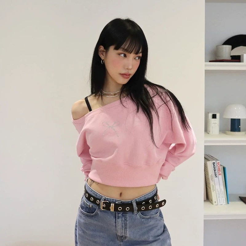 | nameOriginal | Off-shoulder campus-style hottie short top with bow |