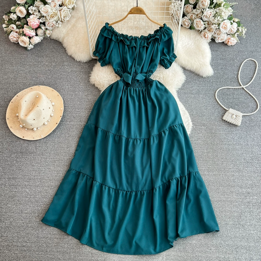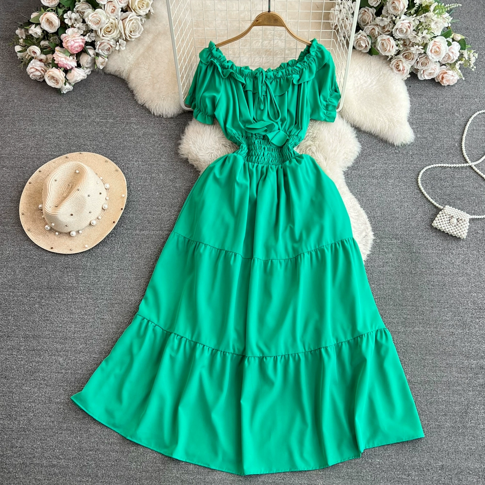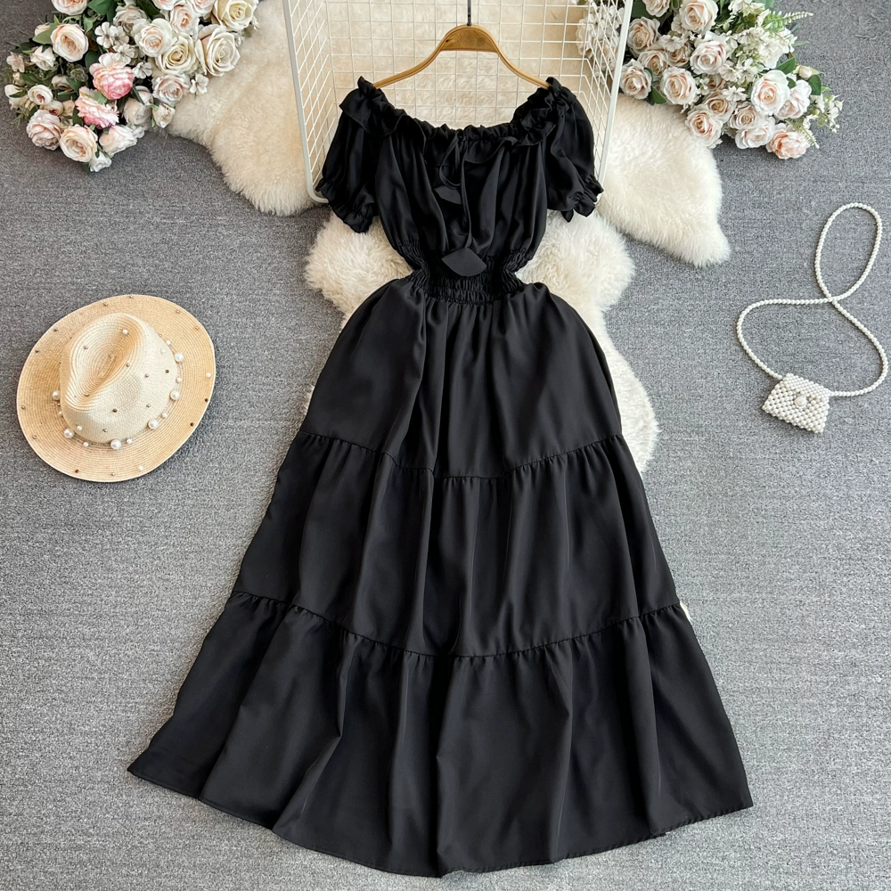 | nameOriginal | Off-shoulder celebrity A-line dress beach vacation short-sleeve |