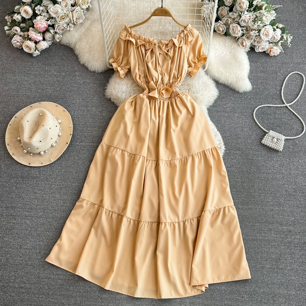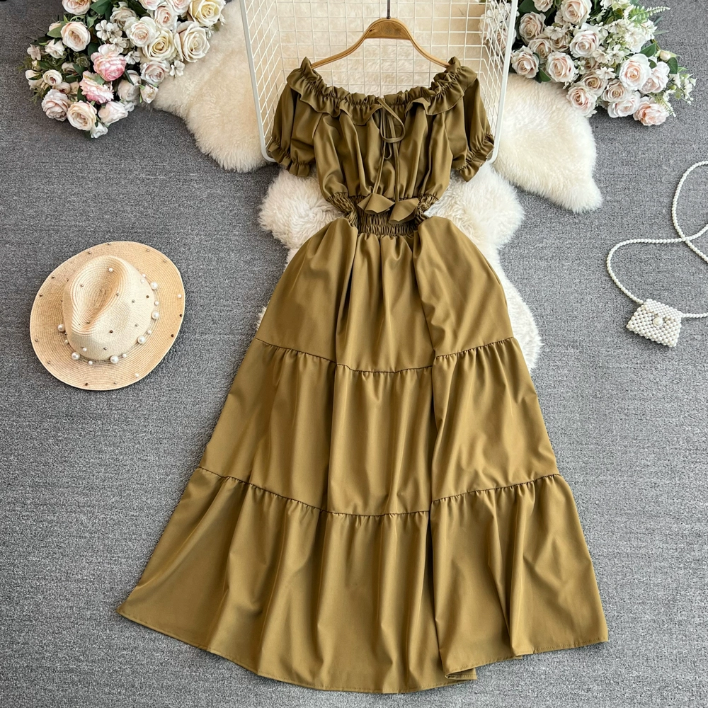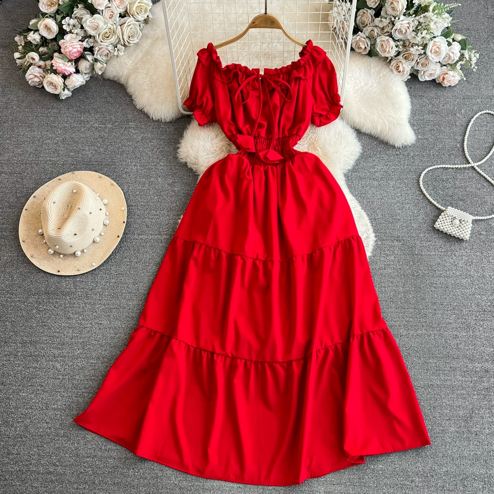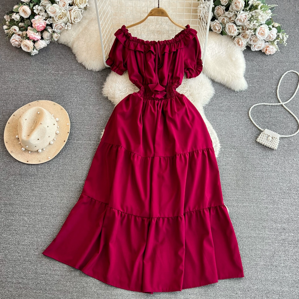 | nameOriginal | Off-shoulder celebrity A-line dress beach vacation short-sleeve |