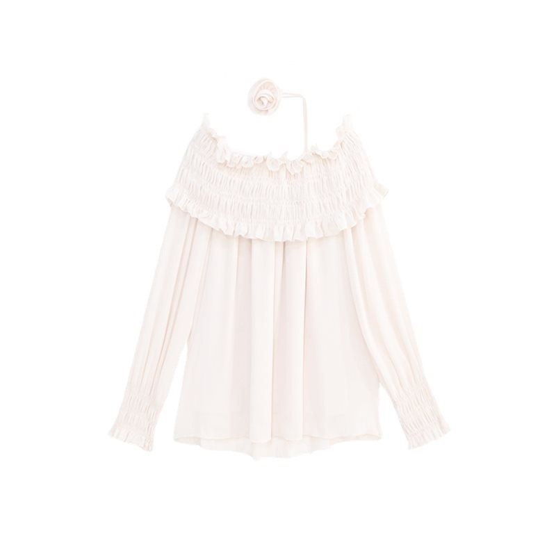 off-shoulder chiffon top summer 2024 new French elegant ruffled off-shoulder black dress women’s clothing