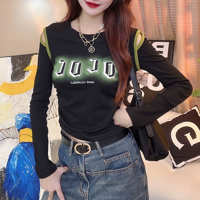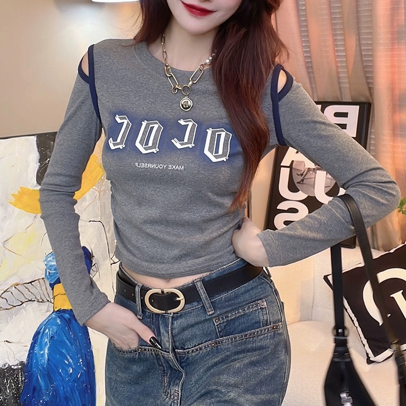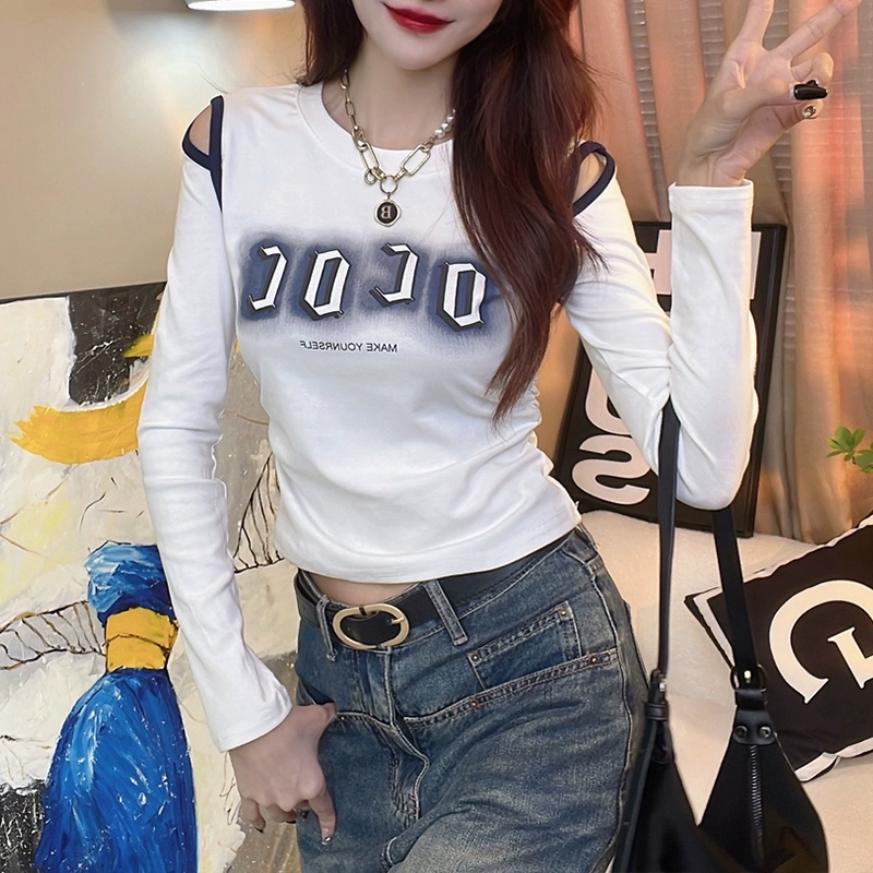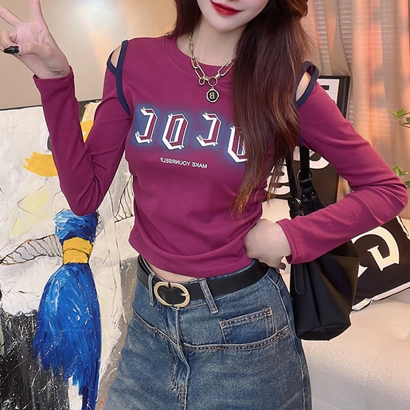 | nameOriginal | Off-shoulder cutout beautiful short top long sleeve t-shirt |