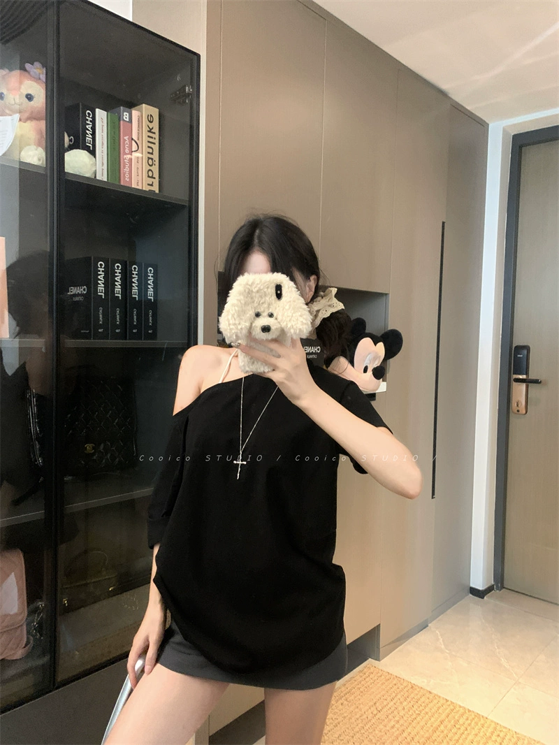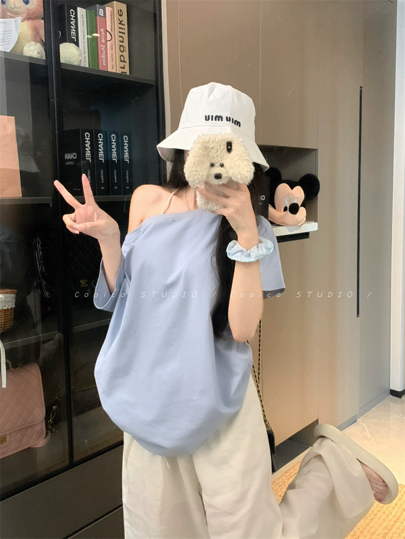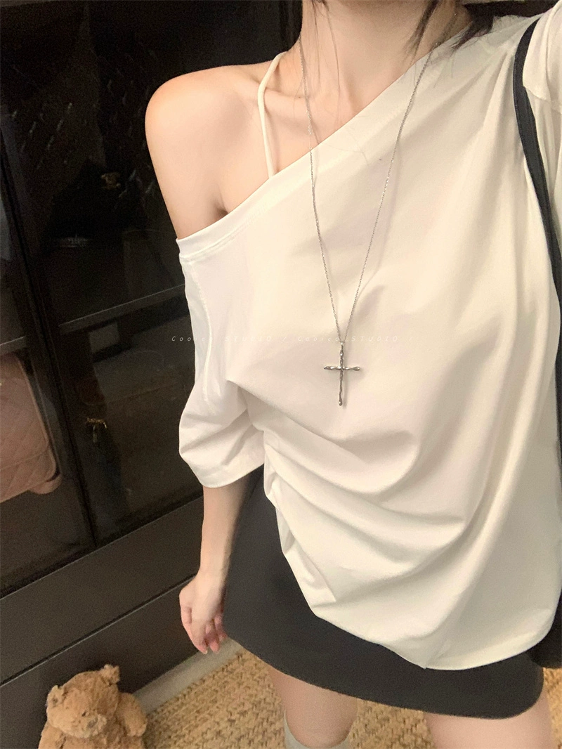 | nameOriginal | Off-shoulder design niche casual loose short-sleeved T-shirt |