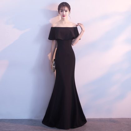 Off-shoulder Evening Dress for Women’s 2023 New Style Celebrity Black Banquet Host Sexy Slim-fit Slimming Fishtail Long