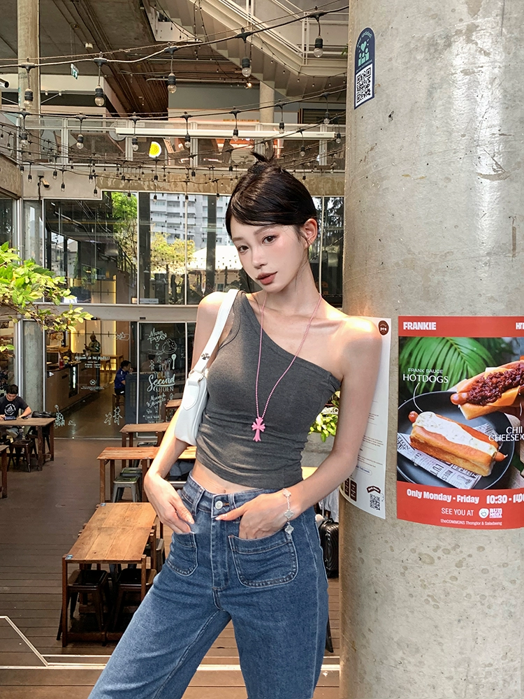Off-shoulder green slim fit navel-baring sleeveless camisole