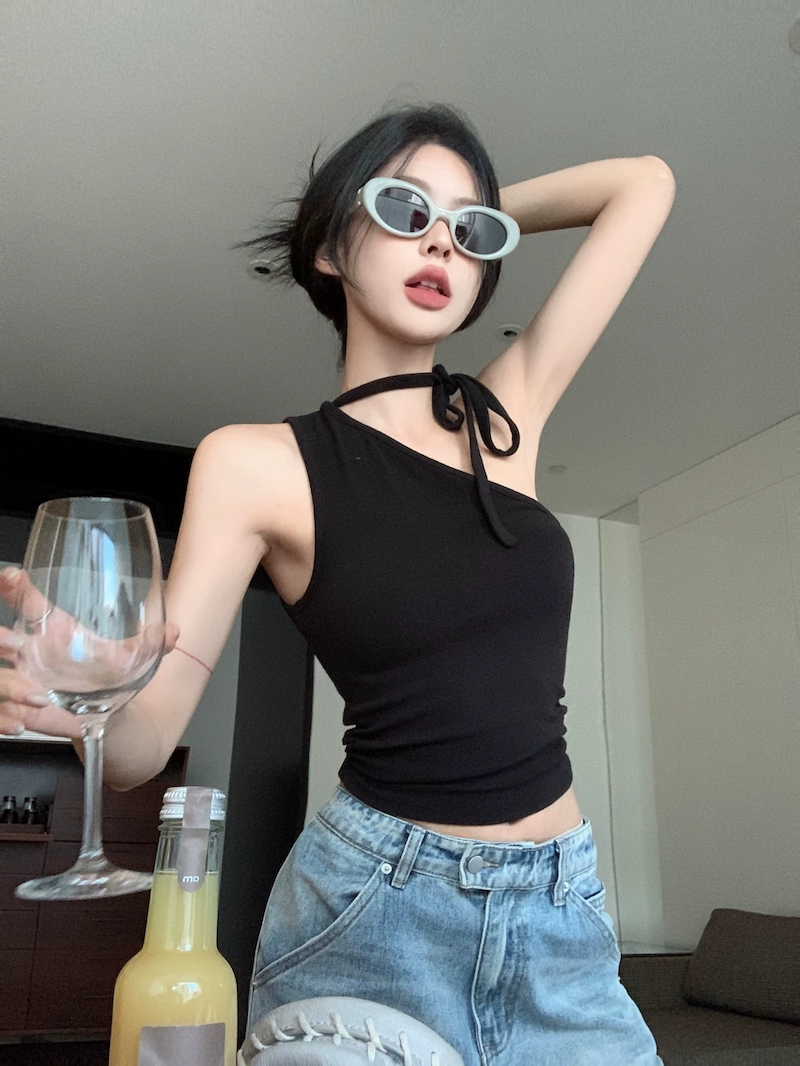 | nameOriginal | Off-shoulder kumikumi slim fit sleeveless top with halter neck |