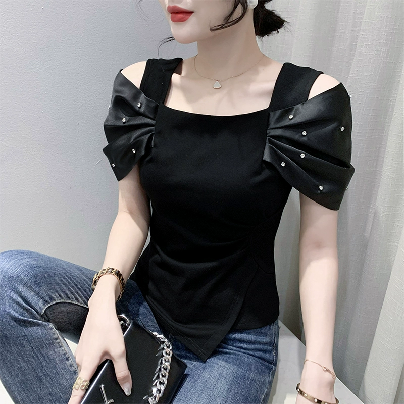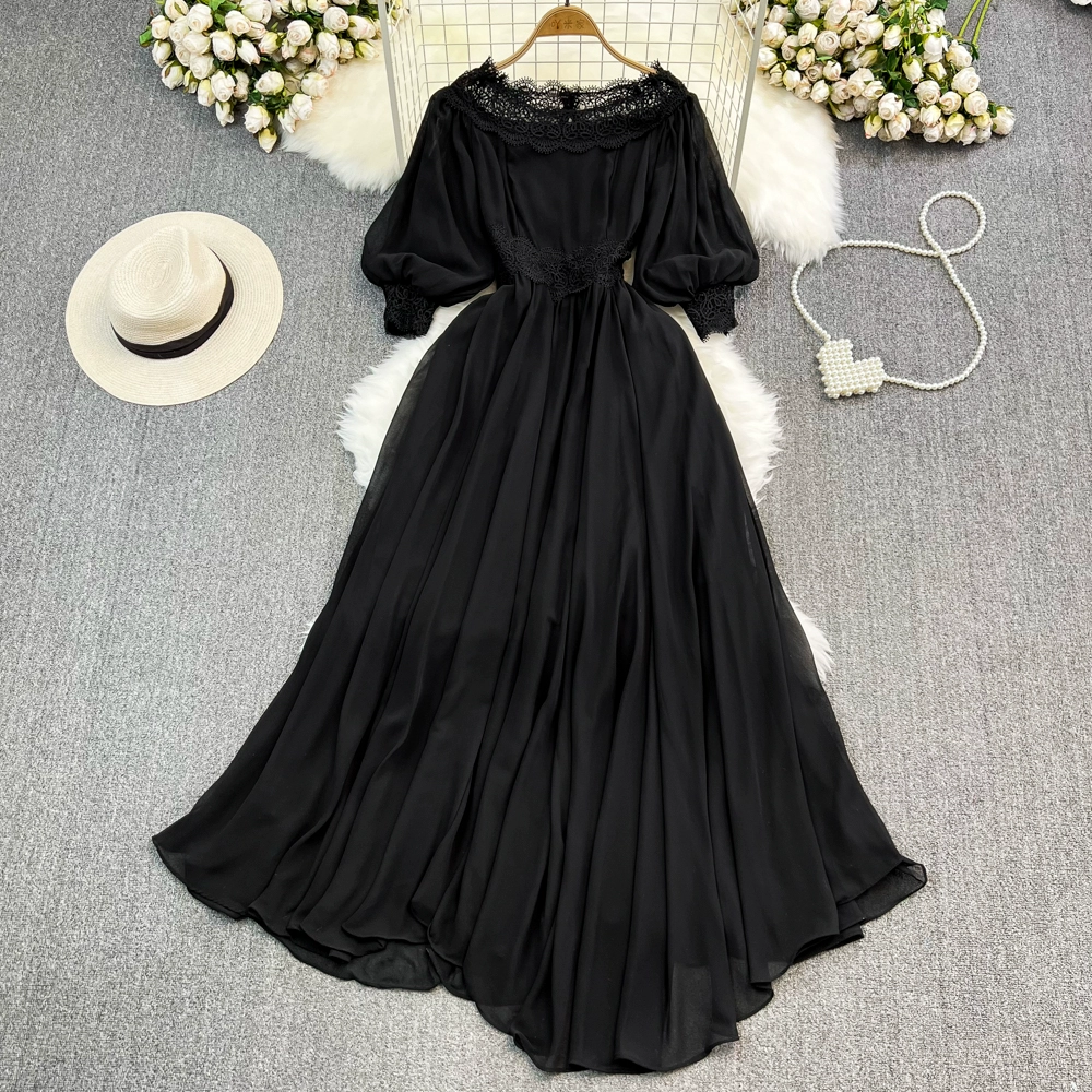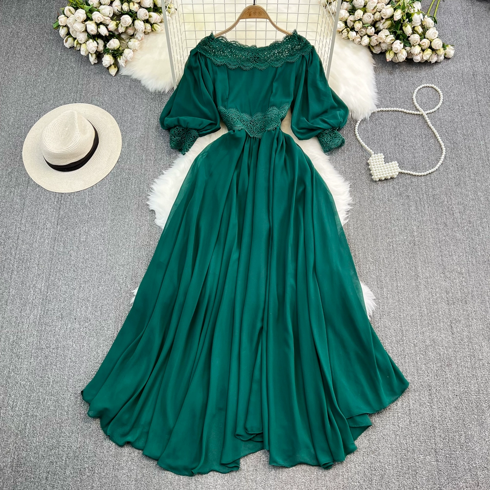 Off-shoulder lantern sleeves A-line irregular elegant dress