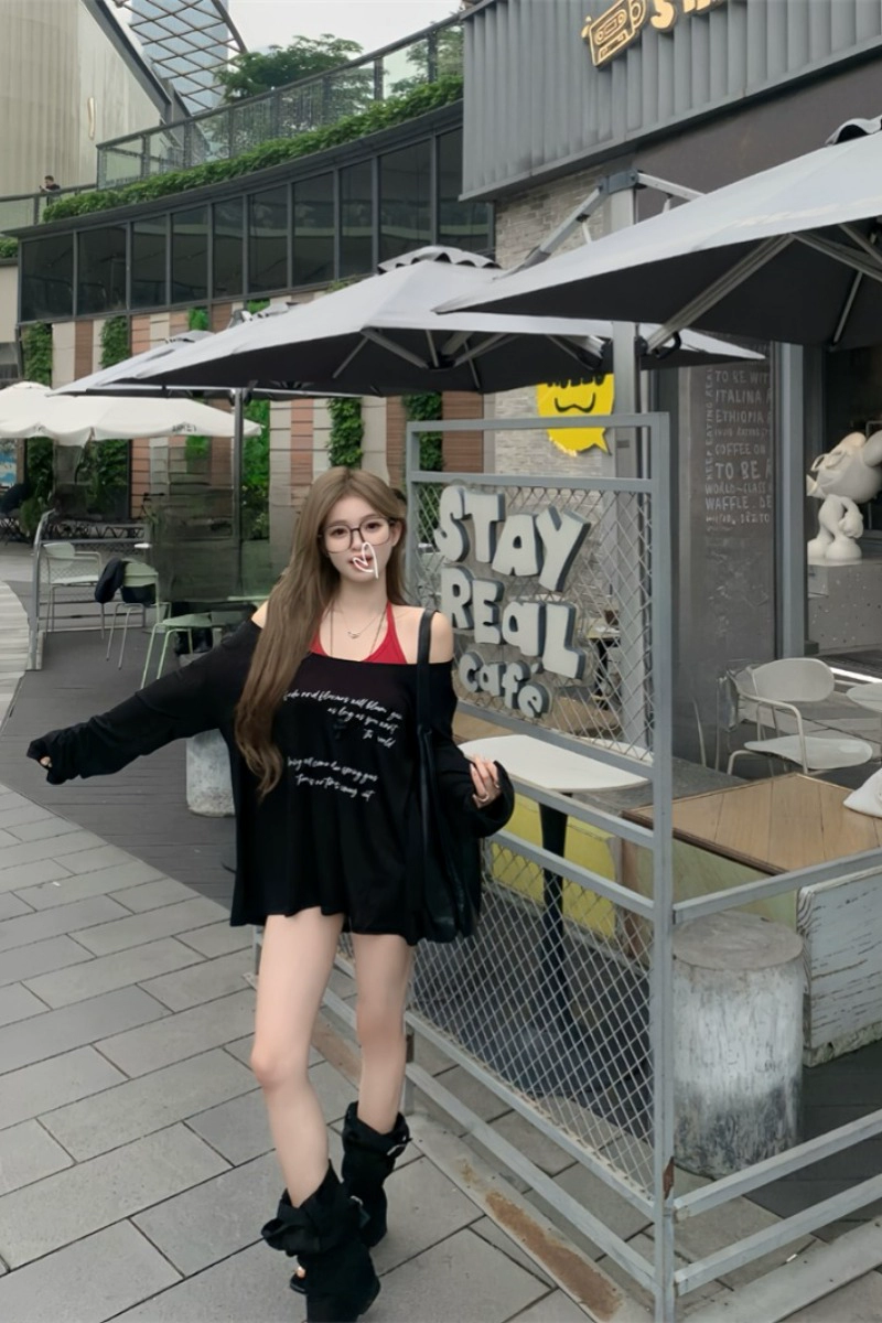 | nameOriginal | Off-shoulder letter print summer loose long-sleeved T-shirt |
