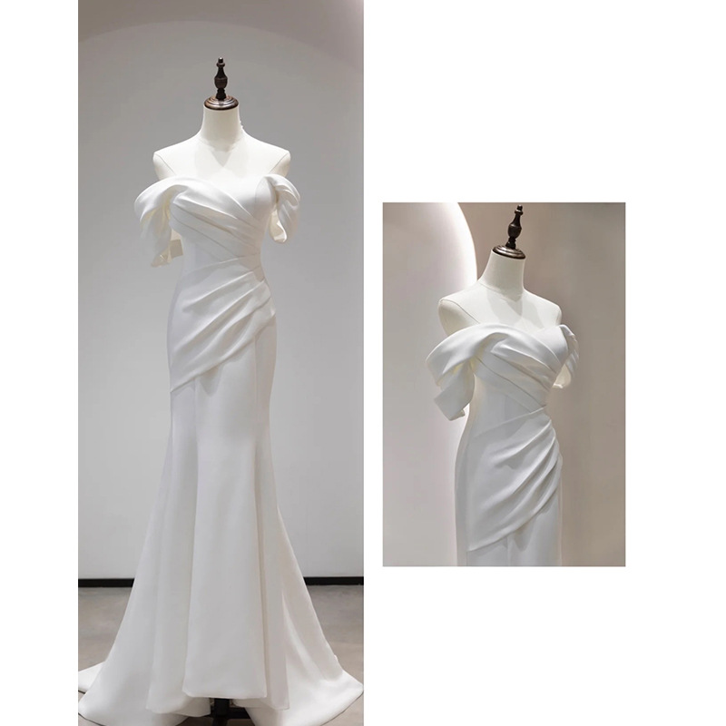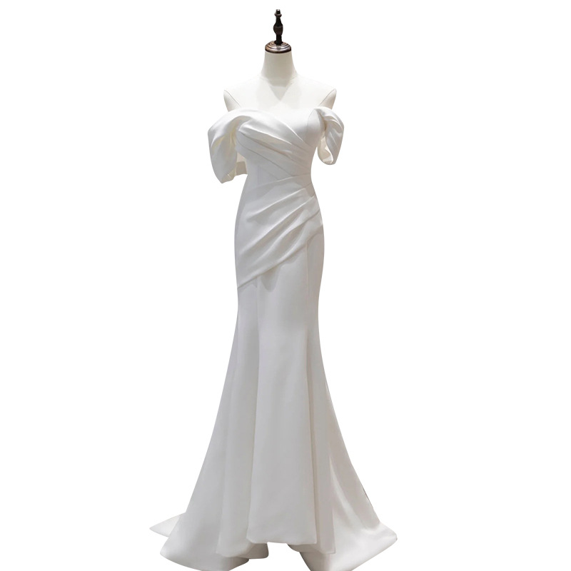 | nameOriginal | Off-shoulder light wedding dress bridal simple slim satin fishtail elegant welcome door yarn French super fairy dress |
