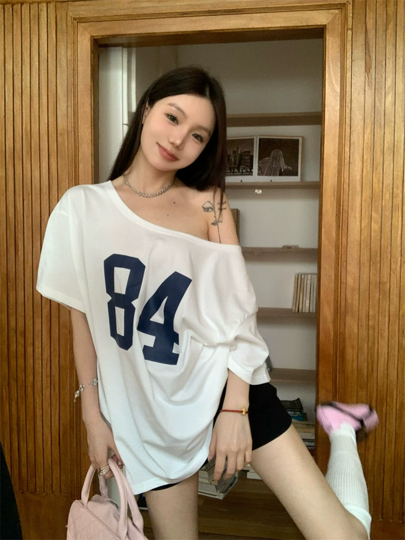 | nameOriginal | Off-shoulder loose design casual printed short-sleeved T-shirt |