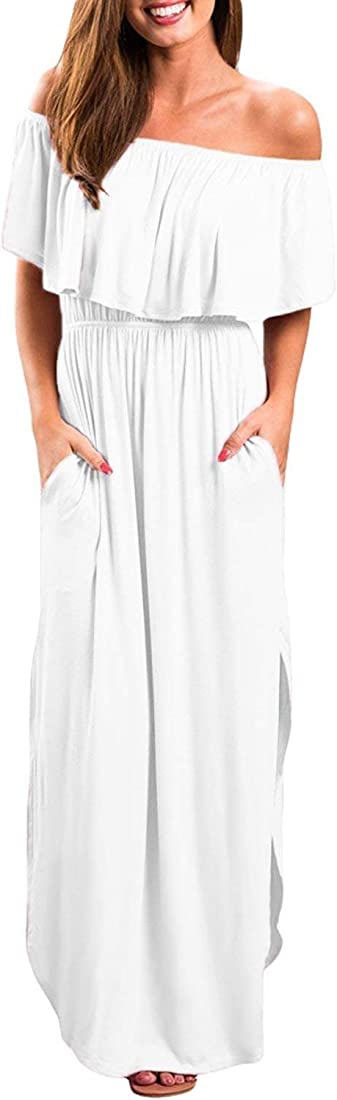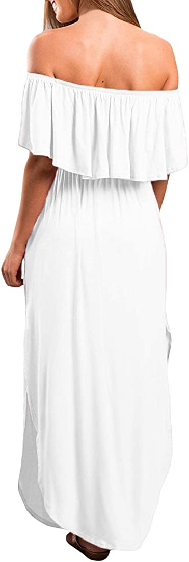 LILBETTER Womens Off The Shoulder Ruffle Party Dresses Side Split Beach Maxi Dress