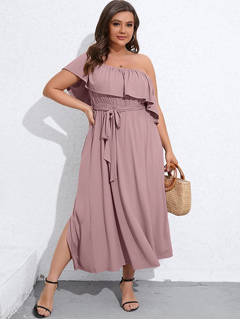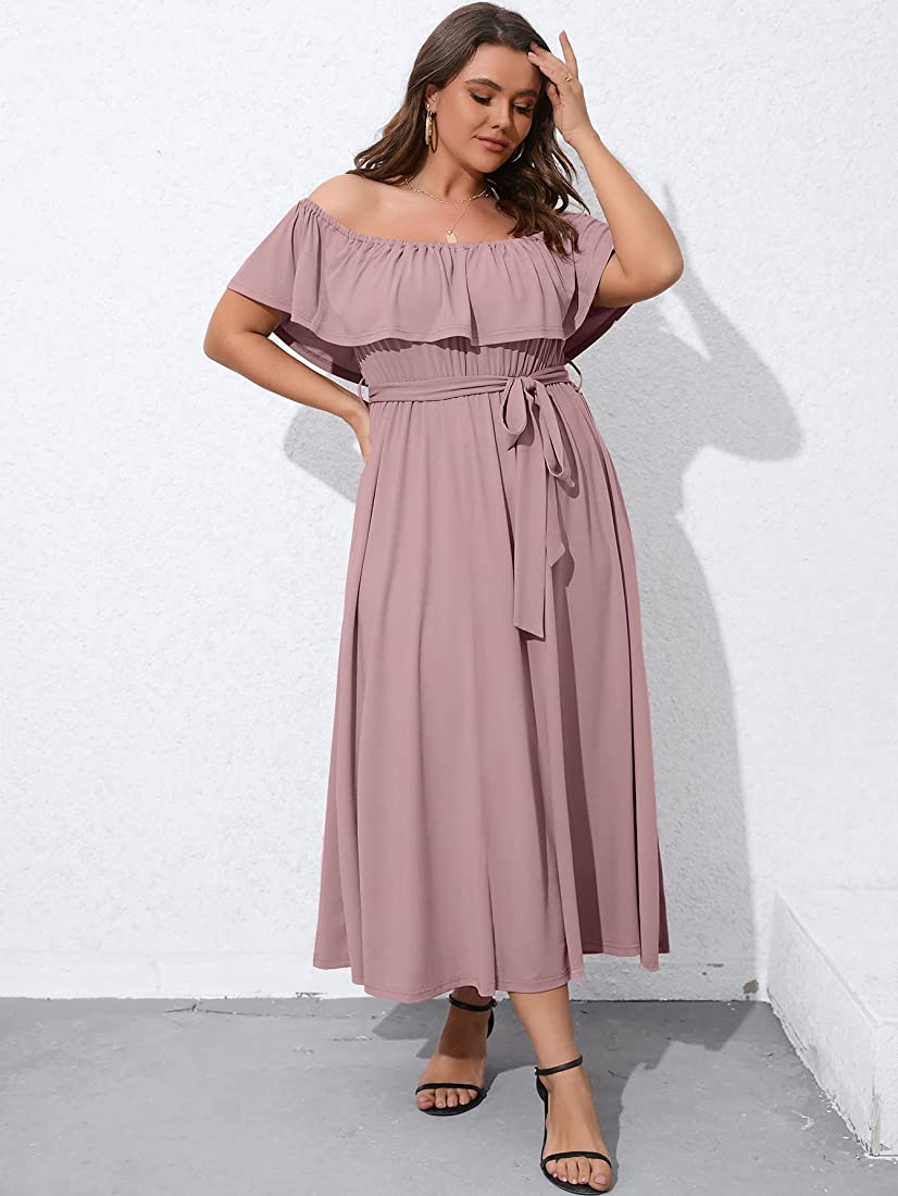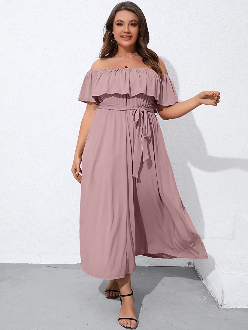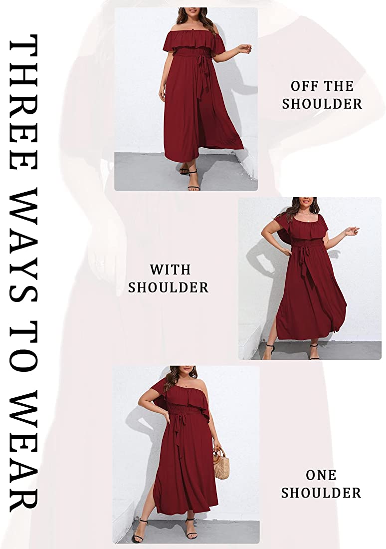 | nameOriginal | SCOMCHIC Womens Plus Size Off The Shoulder Maxi Dress for Wedding Guest Summer Casual Side Split Ruffle Long Beach Dresses |