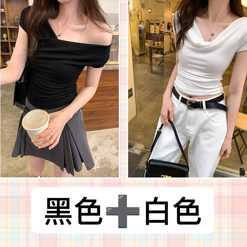 | nameOriginal | Off-shoulder niche swing collar slim fit hot girl short-sleeved T-shirt |
