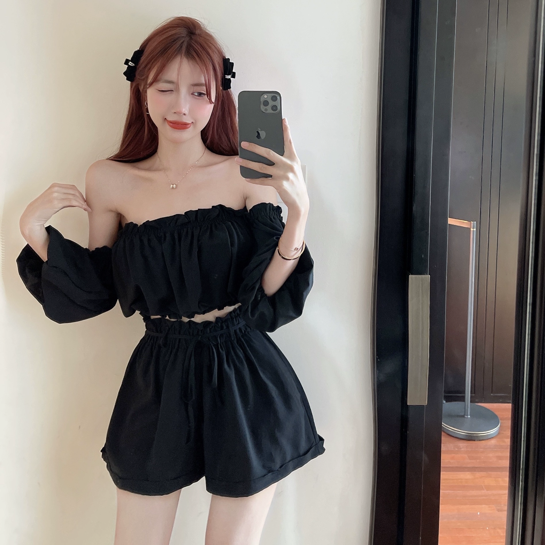 | nameOriginal | Off-shoulder one-neck high-waisted drawstring suit top |