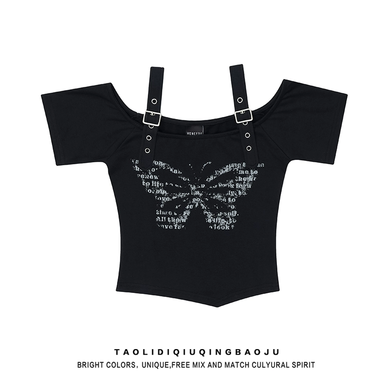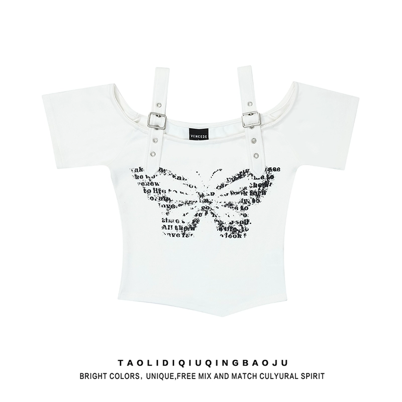 Off-shoulder printed abg hot girl slim top short-sleeved T-shirt