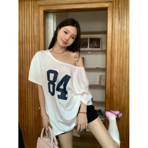 | nameOriginal | Off-shoulder retro printed loose casual short-sleeved T-shirt |