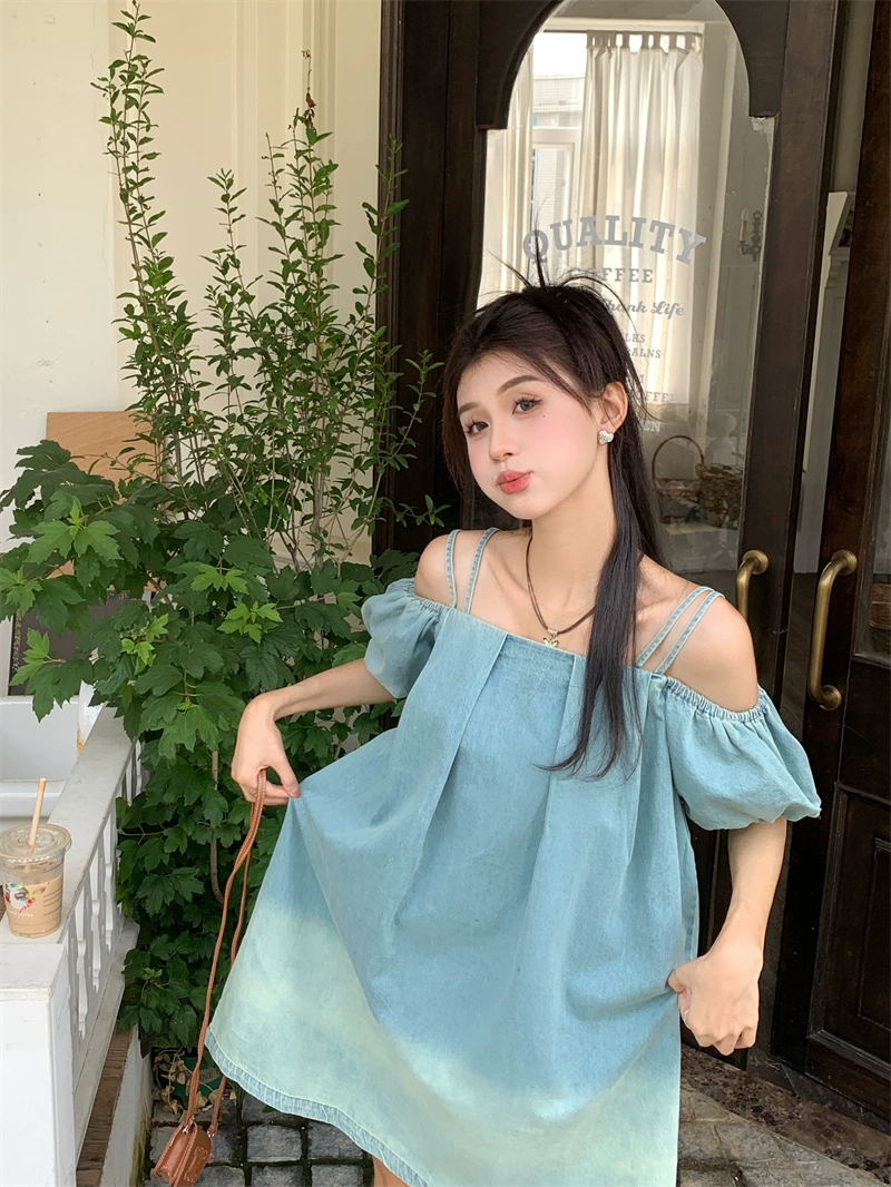 | nameOriginal | Off-shoulder retro summer suspender skirt loose washed denim |