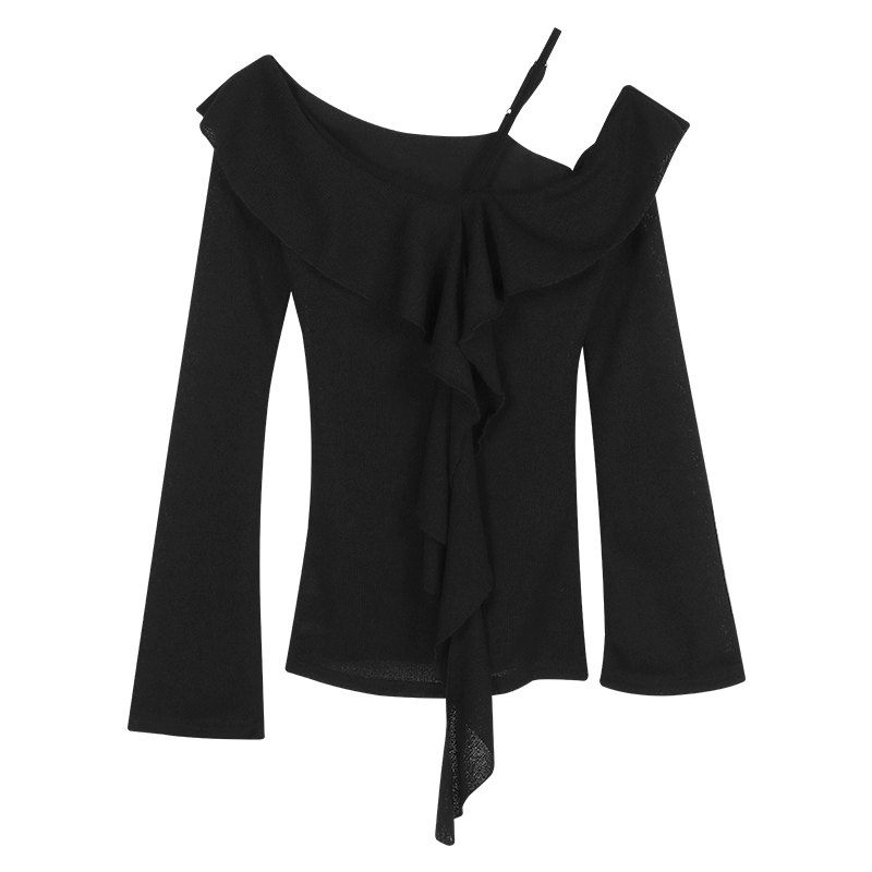 | nameOriginal | Off-shoulder ruffled spring sheer lusty long-sleeved sweater |