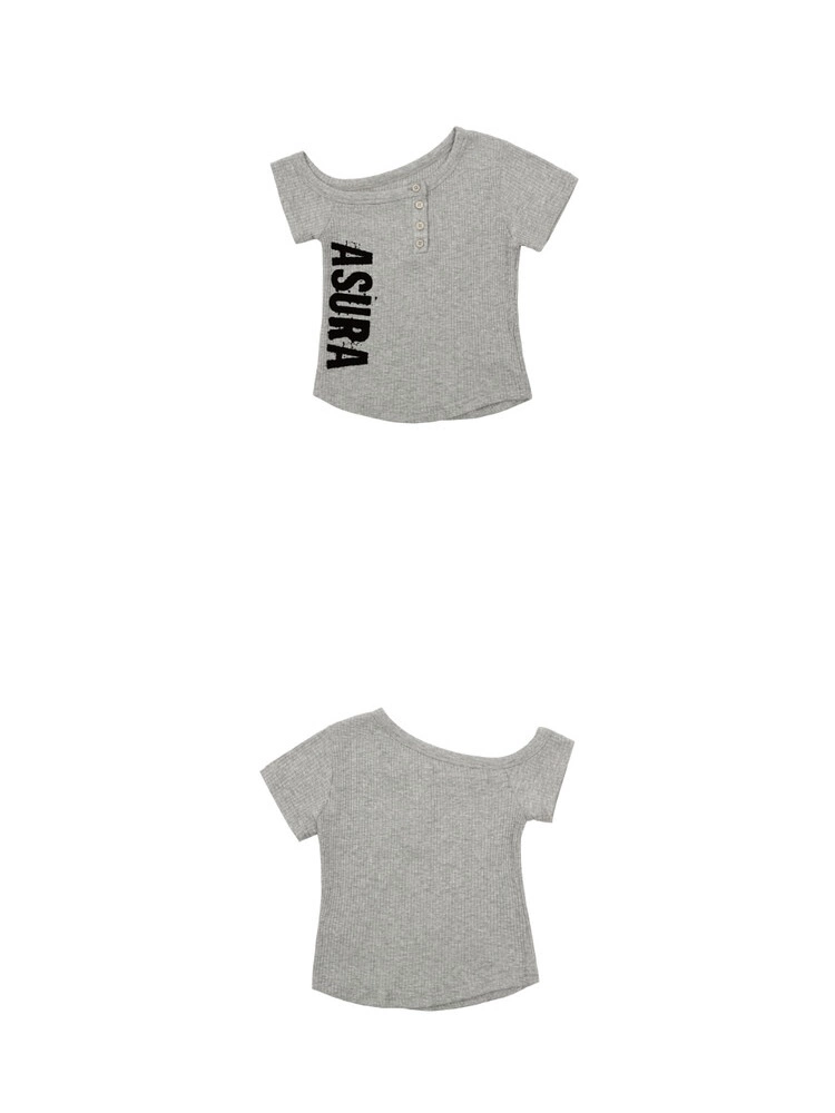 | nameOriginal | Off-shoulder self-made asymmetrical versatile short-sleeved top |