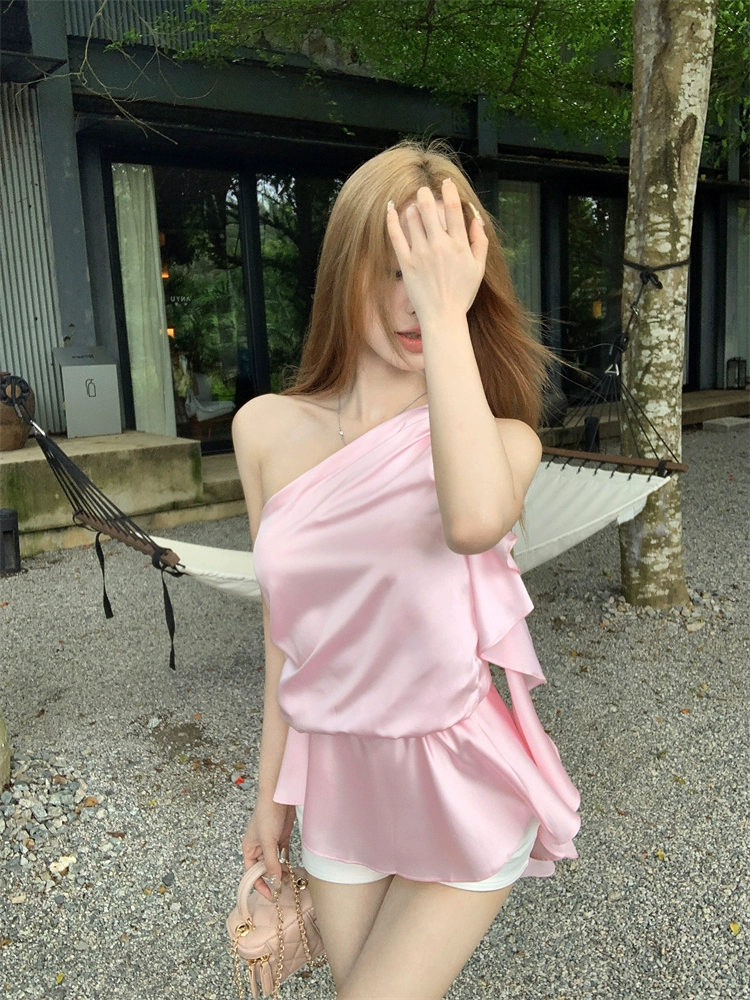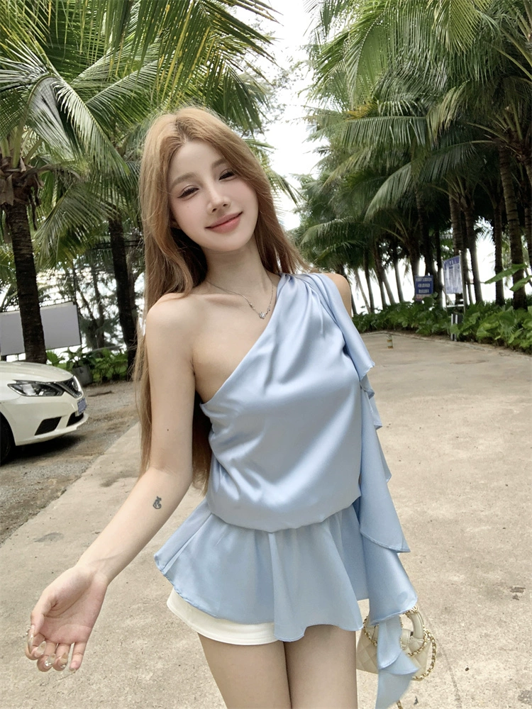 | nameOriginal | Off-shoulder sleeveless pure lust wind ribbon ruffled acetic acid |