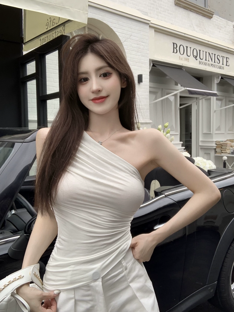 | nameOriginal | Off-shoulder sleeveless slim fit stretch pleated irregular tank top |