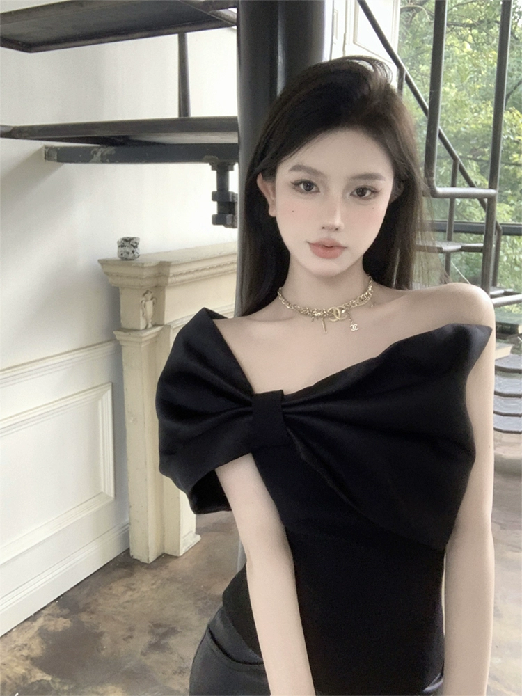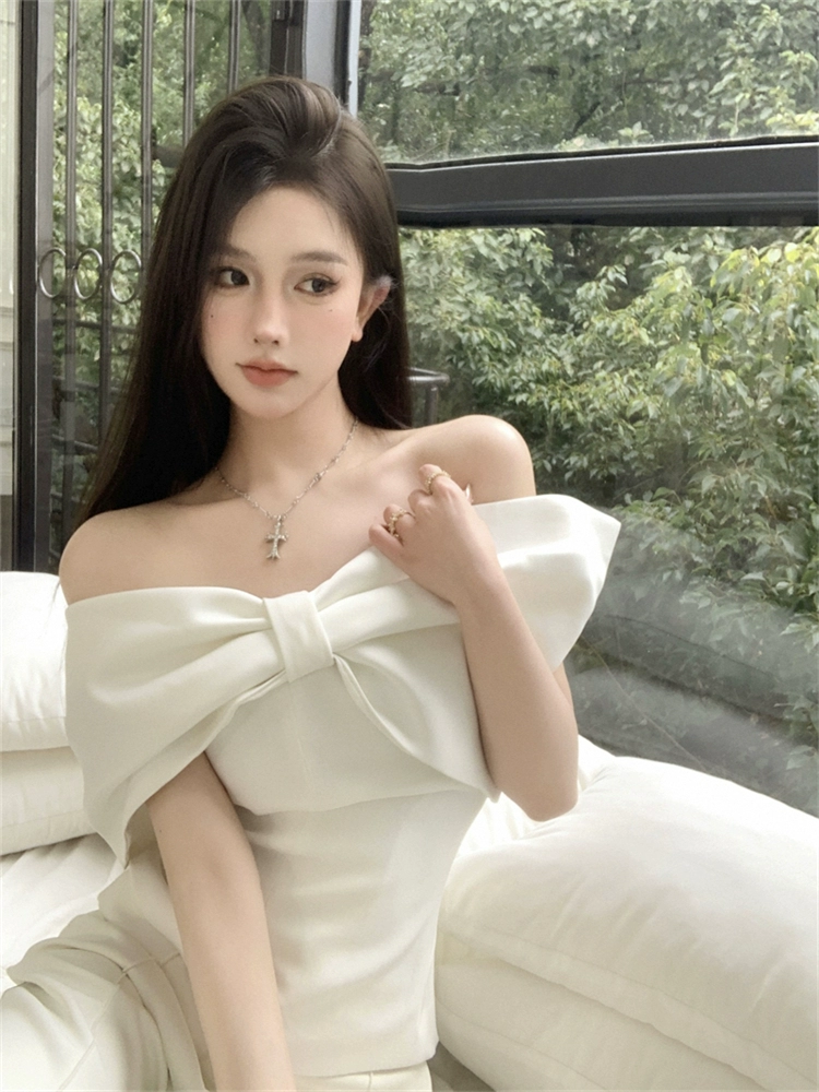 Off-shoulder summer temperament exquisite slim short bow