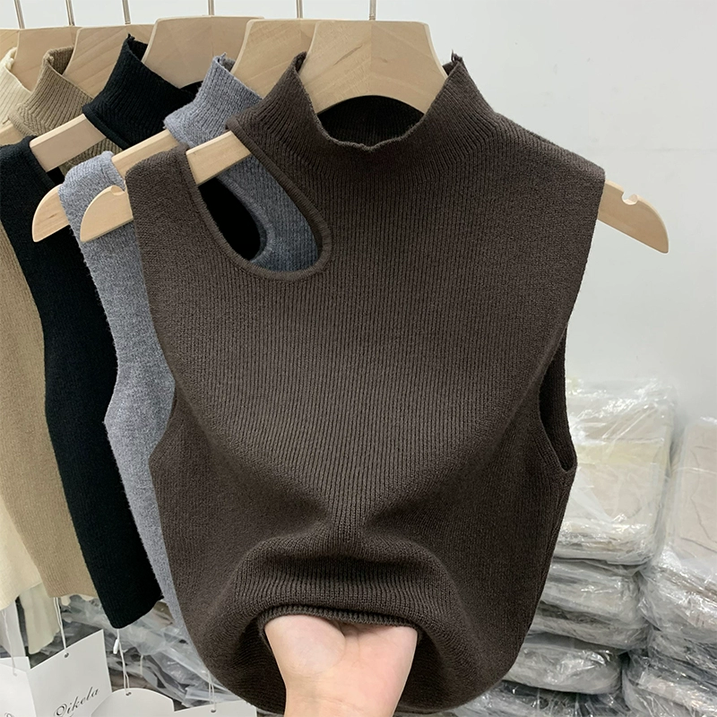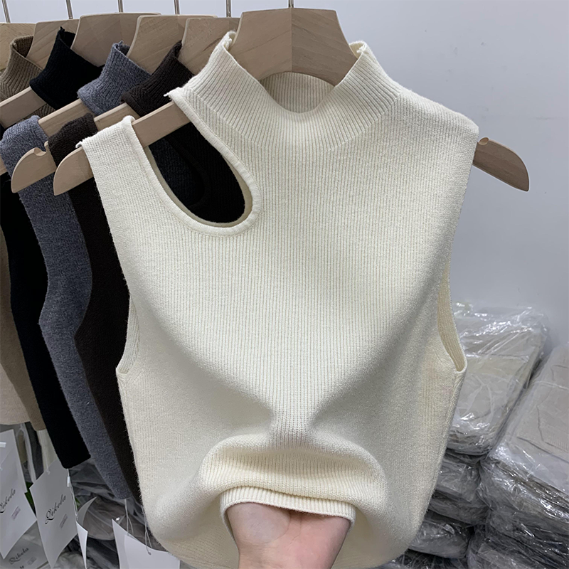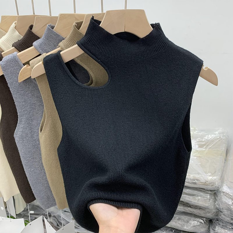 | nameOriginal | Off-shoulder soft and waxy half-high collar 2023 summer vest |