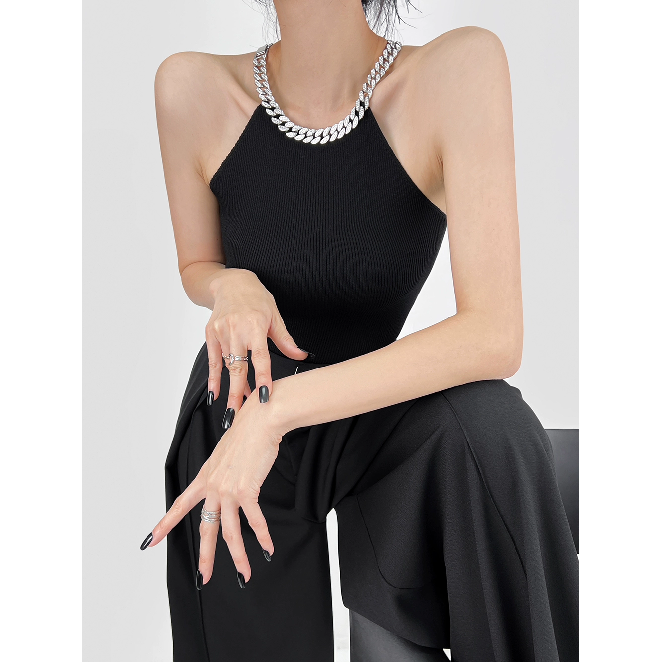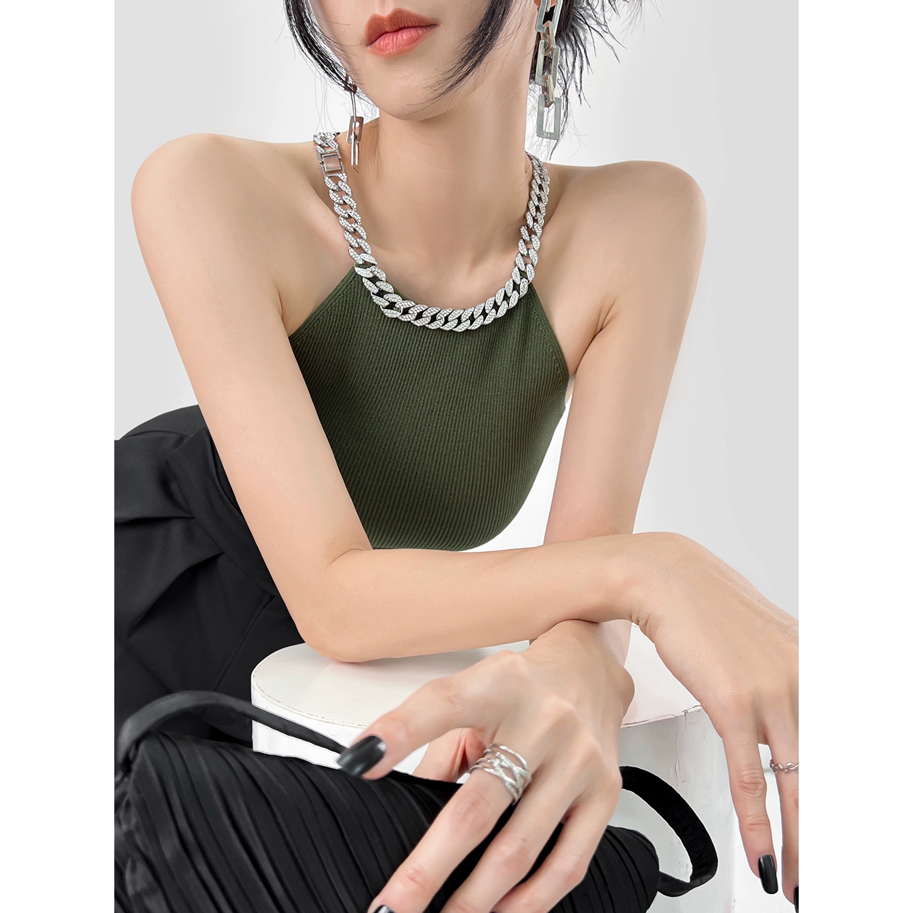 | nameOriginal | Off-shoulder sparkling diamond slim fit sleeveless top with necklace |