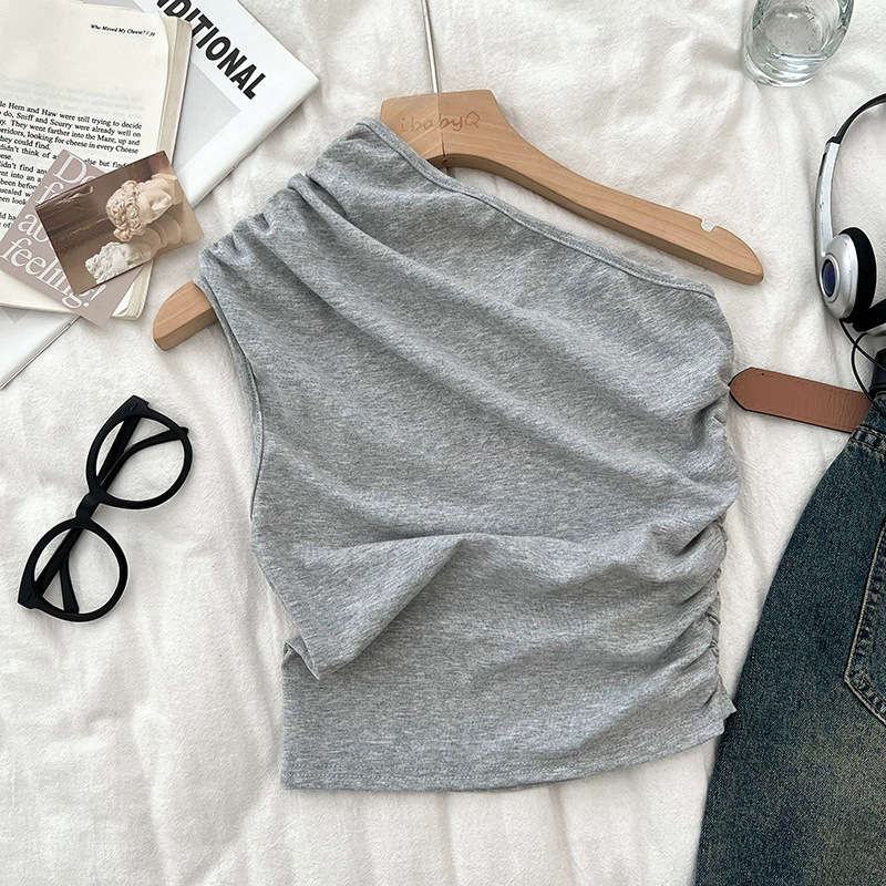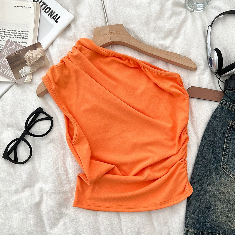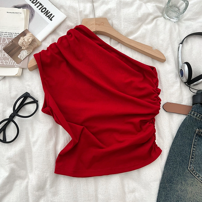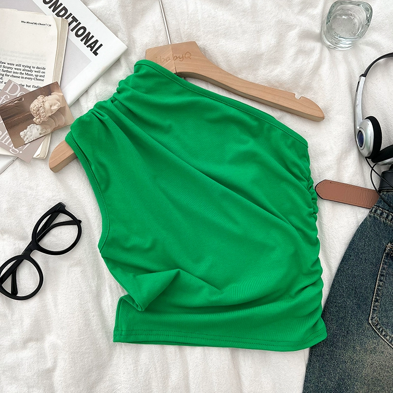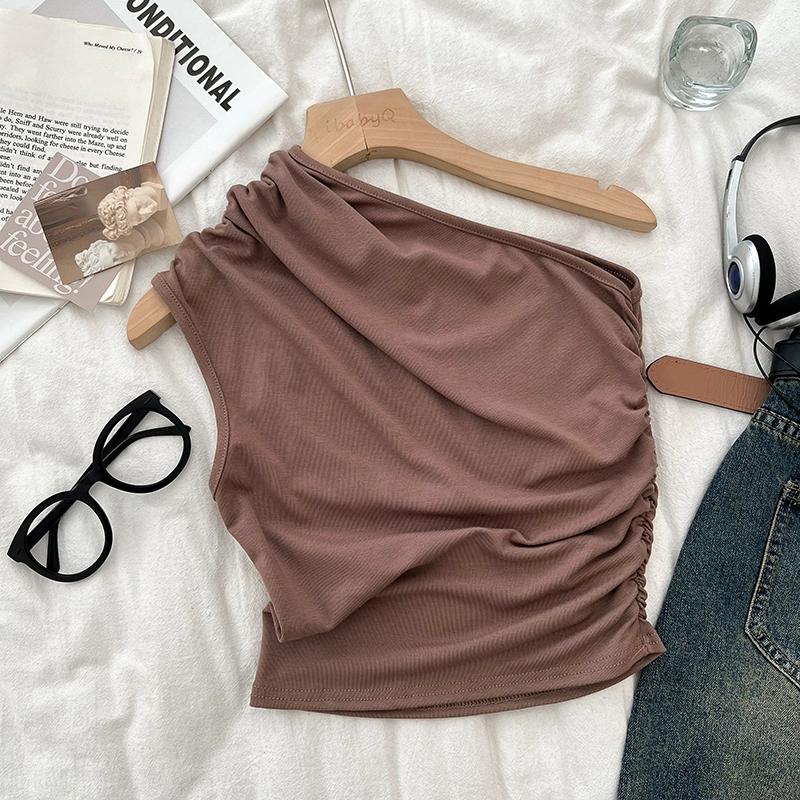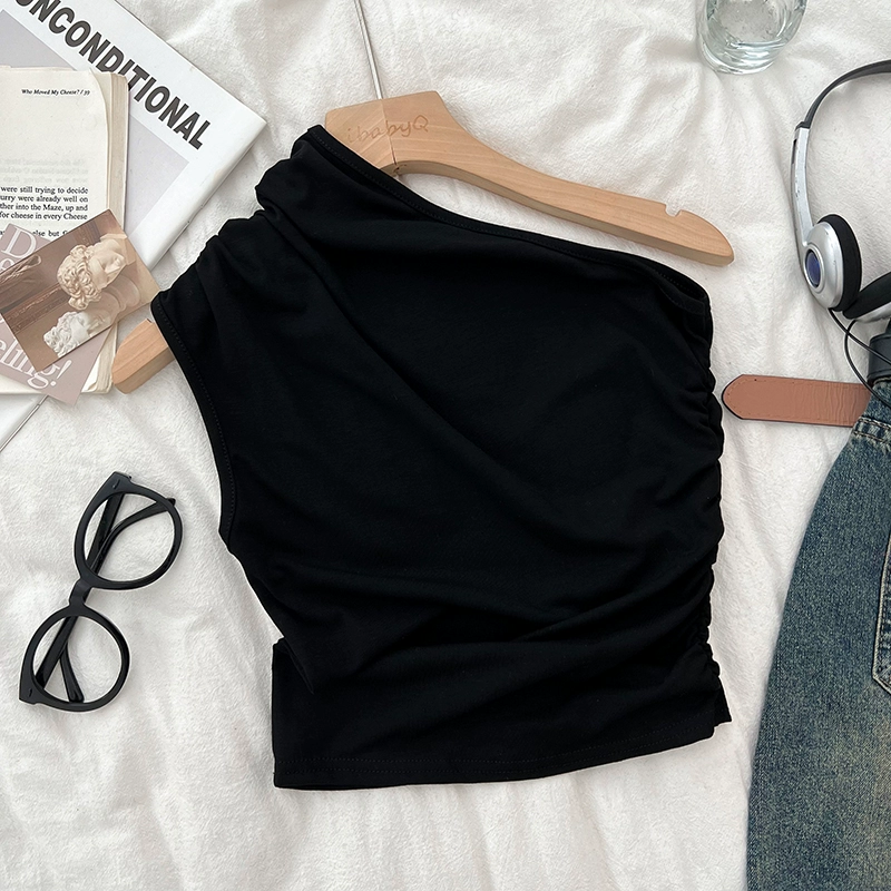 | nameOriginal | Off-shoulder stylish pleated slim fit sleeveless vest |