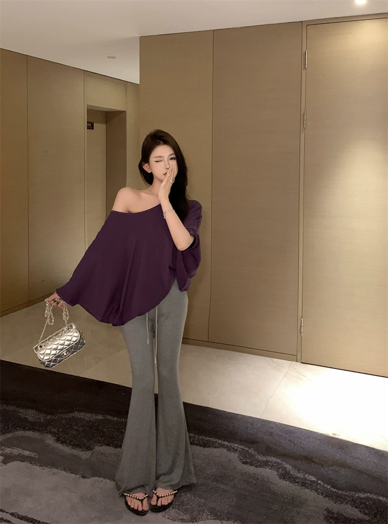 Off-shoulder summer design niche loose thin T-shirt