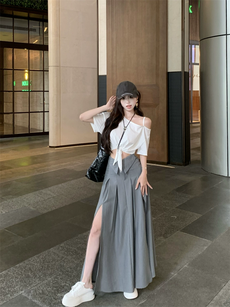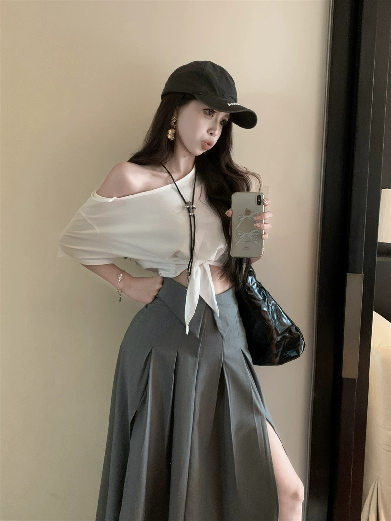 | nameOriginal | Off-shoulder summer loose design solid color short-sleeved T-shirt |