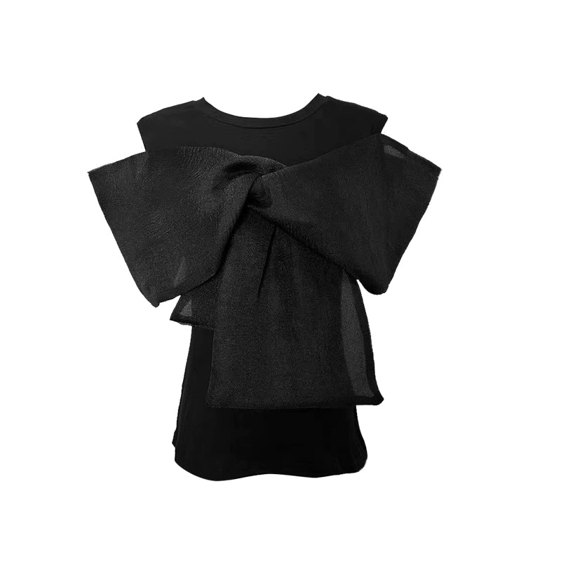 | nameOriginal | Off-shoulder sweet and spicy round neck patchwork top with big bow |