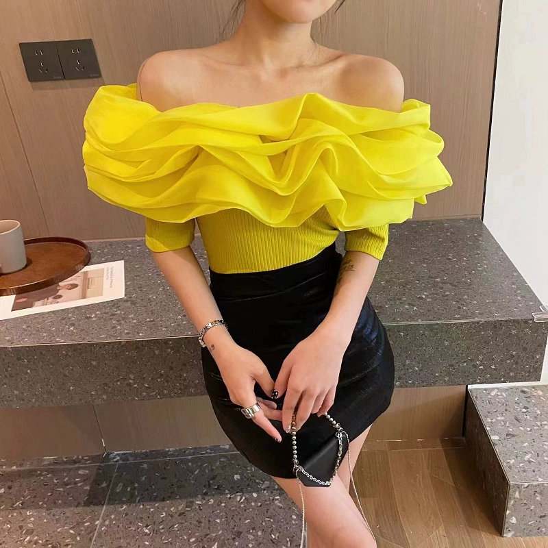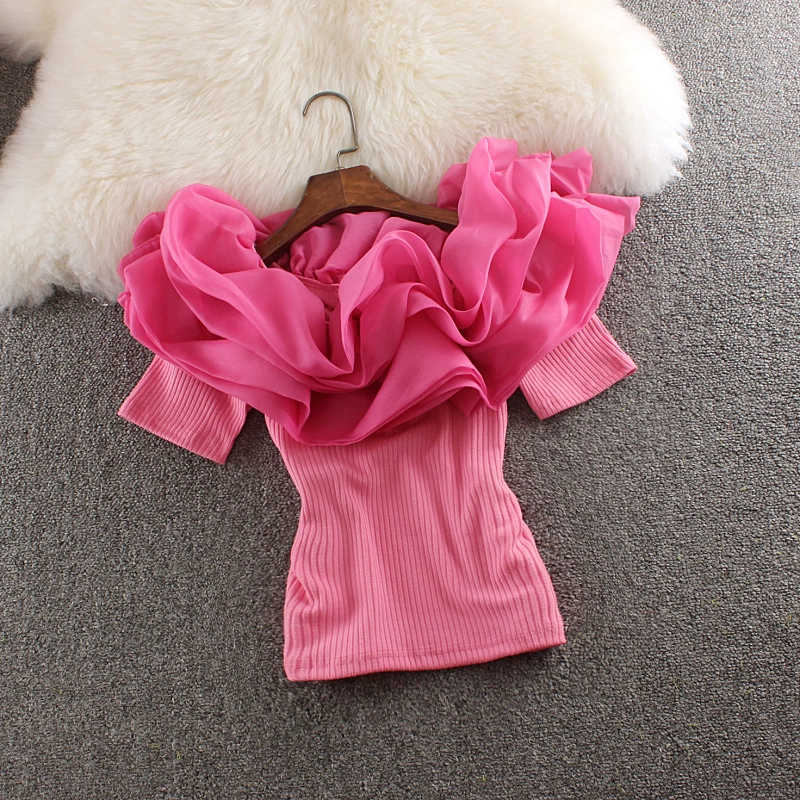 | nameOriginal | Off-shoulder T-shirt retro three-dimensional short-sleeved top with flowers |